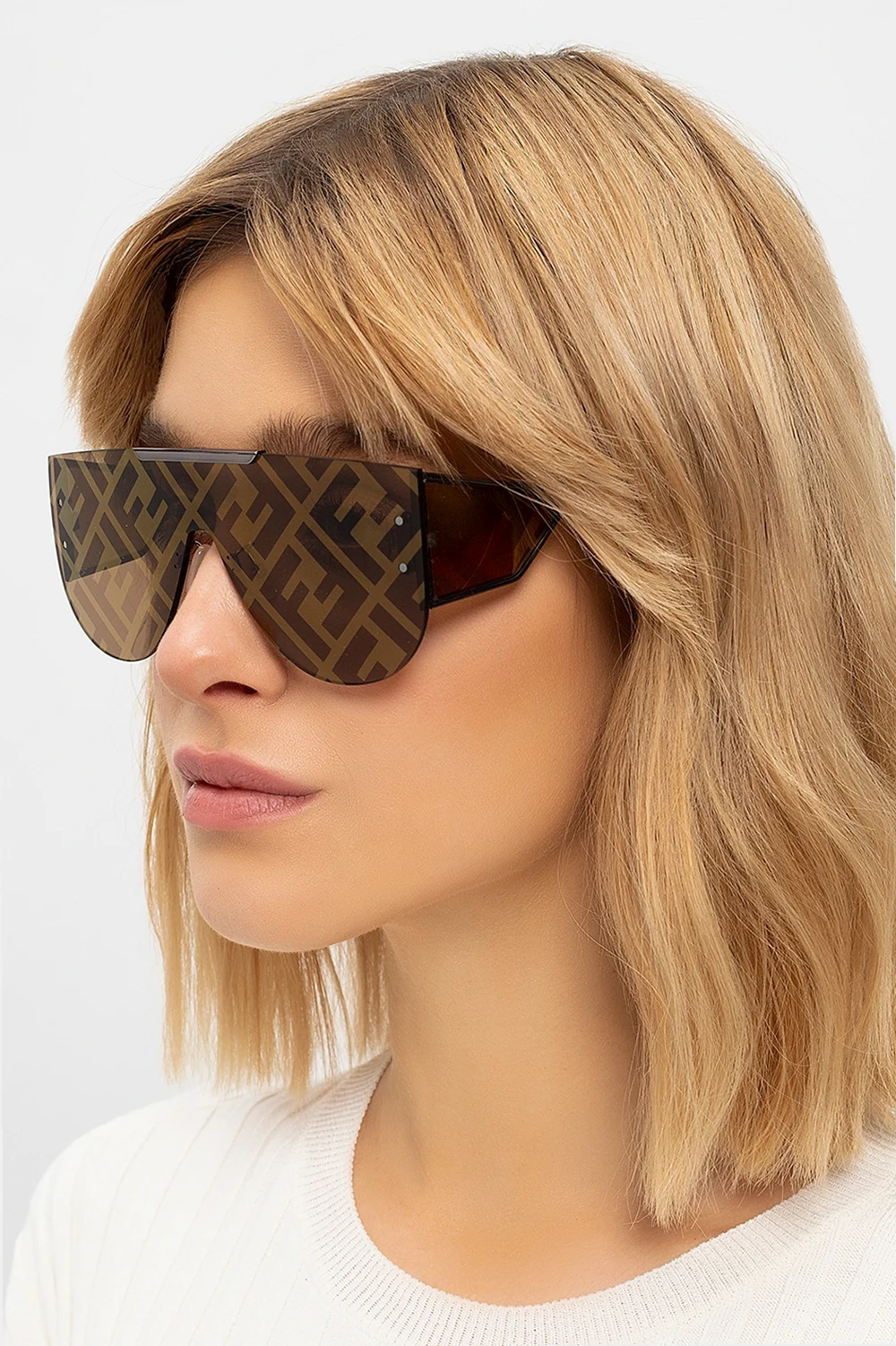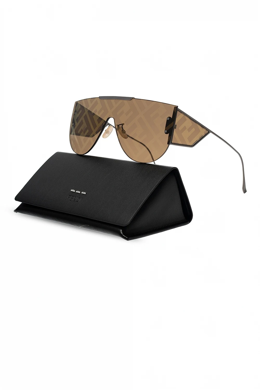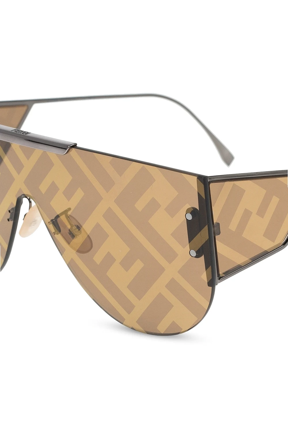 Okulary przeciwsłoneczne w kolorze srebrnym Fendi. Czarno-złote, certyfikowane soczewki 100% UVA i UVB z nadrukowanym logo.