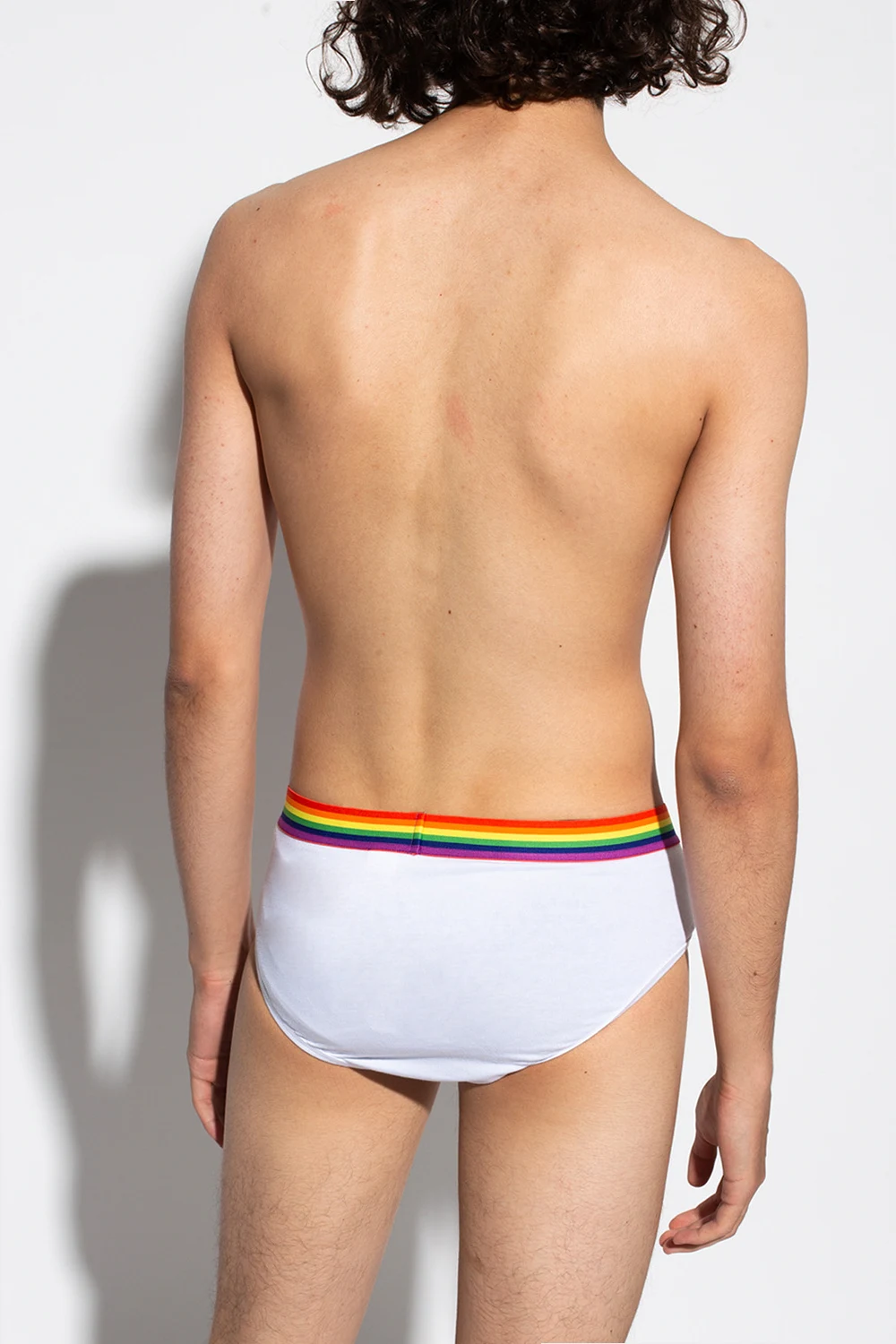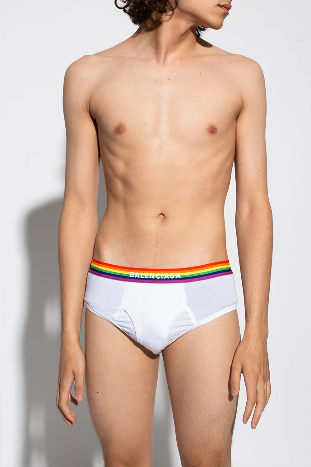 Białe slipy Balenciaga. Wykonane z bawełny. W pasie wszyta kolorowa guma z logo w kolorze białym.