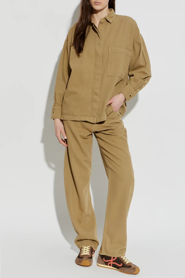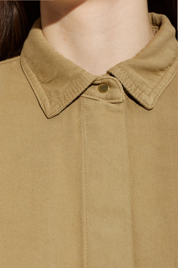 Jeansowa koszula 'Jenny' od cenionego projektanta DARKPARK to kwintesencja wyrafinowanej prostoty, podkreślona elegancją beżowego, jednobarwnego jeansu. Swobodny, oversize’owy krój z lekko opadającą linią ramion zapewnia ponadczasowy komfort i subtelną dynamikę sylwetki. Długie, luźne rękawy zakończone mankietami na dwa guziki oraz klasyczny kołnierz z wyrazistym metalowym zatrzaskiem przy szyi świadczą o nienagannej dbałości o detale.