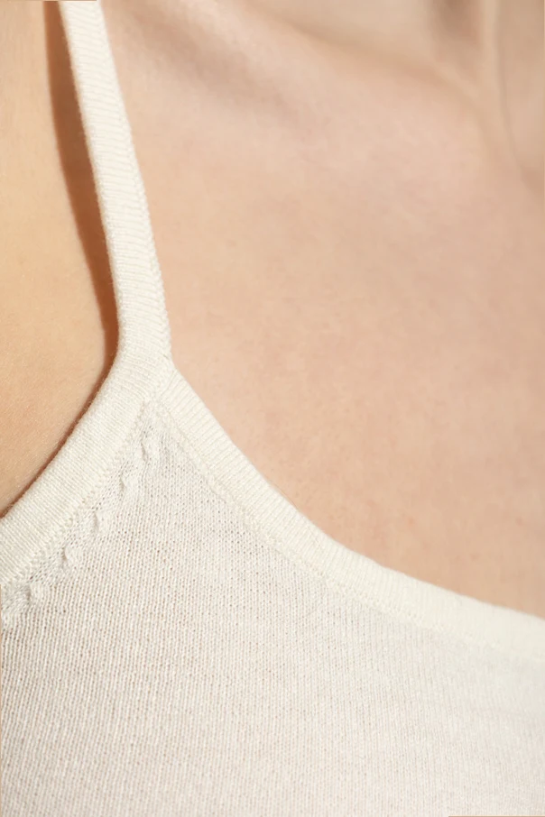 Krótki krój kończący się nad talią oraz wyjątkowo delikatne ramiączka typu spaghetti harmonijnie eksponują ramiona i obojczyki, wprowadzając do stylizacji powiew lekkości. Doskonałej jakości materiał, będący kunsztownym połączeniem miękkiej bawełny z kaszmirem, gwarantuje niezwykłą gładkość, przewiewność oraz przyjemność noszenia.