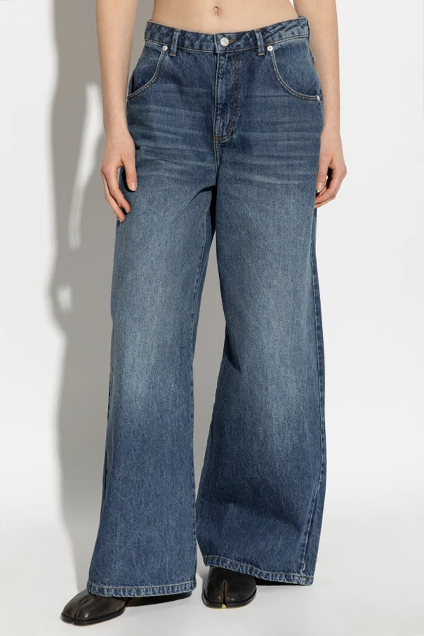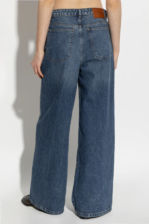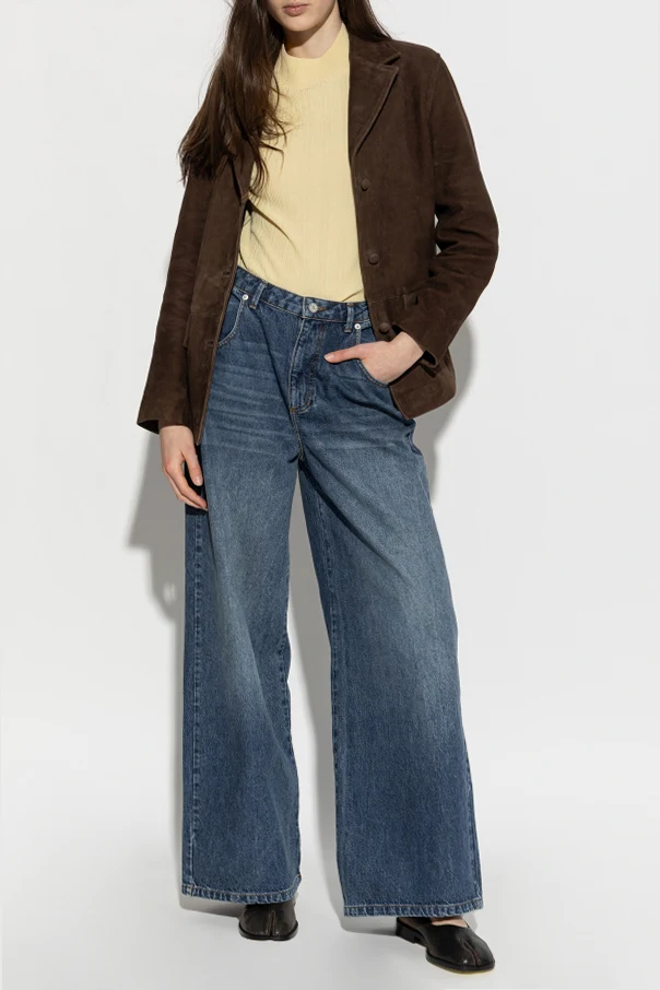 Jeansy „Mora” marki Officine Generale to kwintesencja klasycznej elegancji w nowoczesnym wydaniu. Spodnie wyróżniają się bardzo szerokimi nogawkami o kroju wide leg , które zostały delikatnie rozszerzone już od bioder, tworząc sylwetkę o wyjątkowej proporcji. Wysoki stan podkreśla talię, a jednolity, niebieski odcień denimu z subtelnymi przetarciami na udach nadaje całości szlachetnie postarzanego, ponadczasowego charakteru.