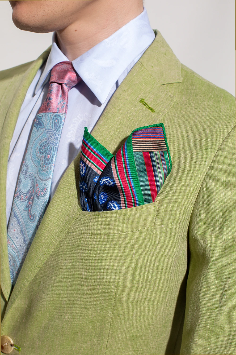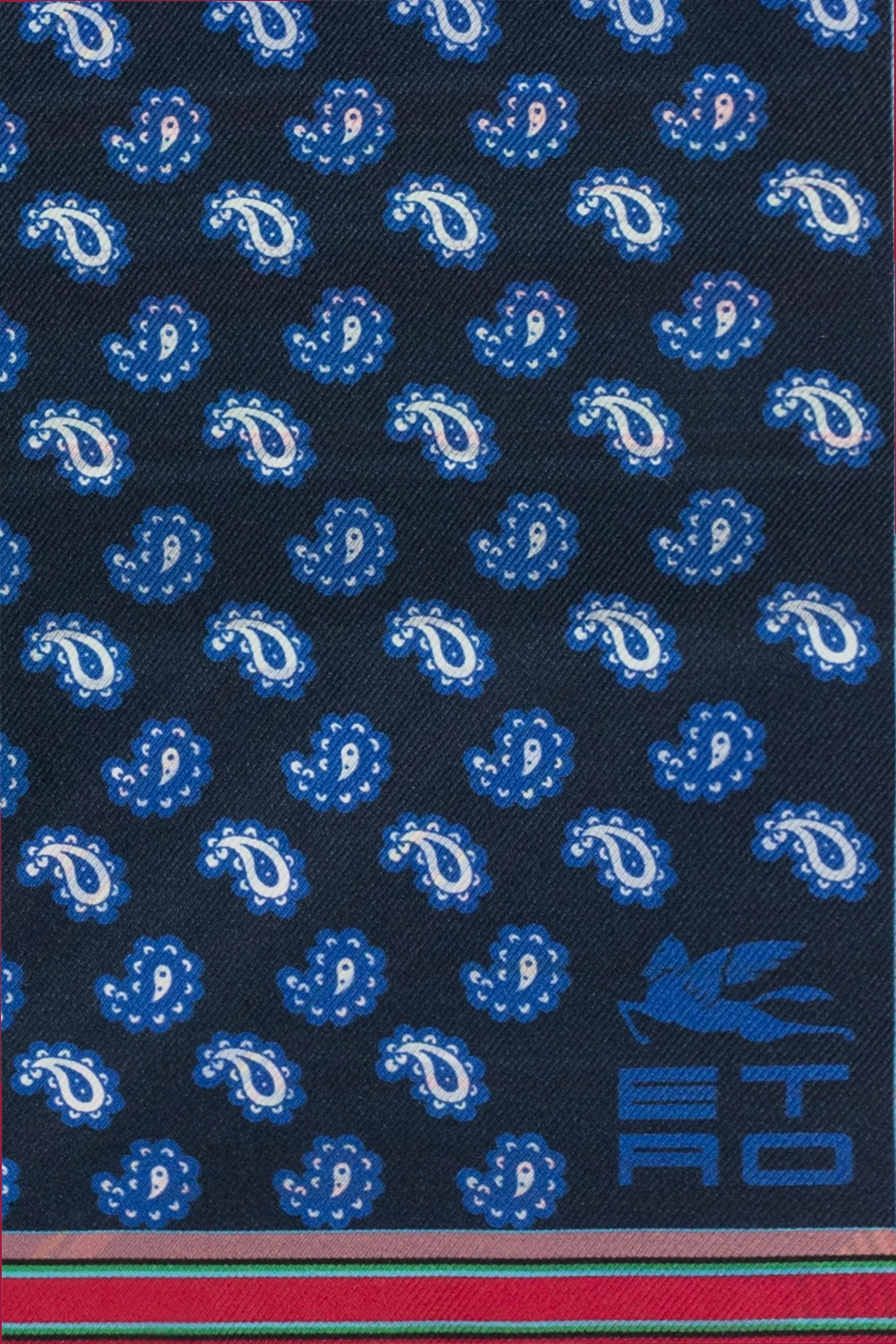Kolorowa poszetka Etro. Wykonana z jedwabiu. Ozdobiona wzorem z motywem ‘paisley’ oraz wzorem w paski.