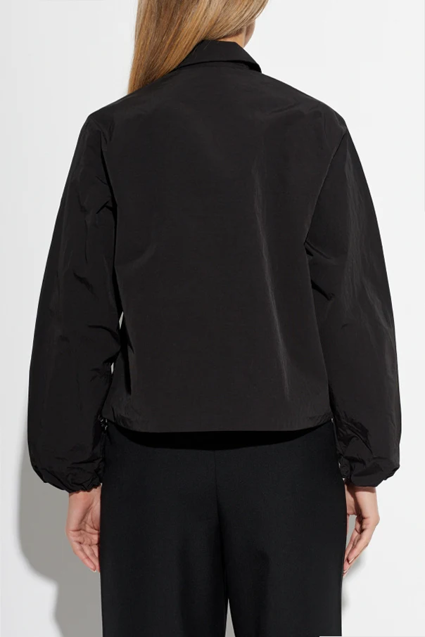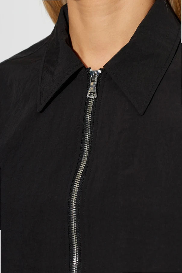 Model wyróżnia centralnie umieszczony, metaliczny suwak oraz wyrazisty, sztywny kołnierz koszulowy – elementy wprowadzające szlachetny charakter. Kurtka została wykonana z lekkiej, matowej tkaniny poliamidowej o wyjątkowej gładkości, zaś luźne rękawy wykończono delikatnym ściągaczem, by zapewnić pełną swobodę ruchów.