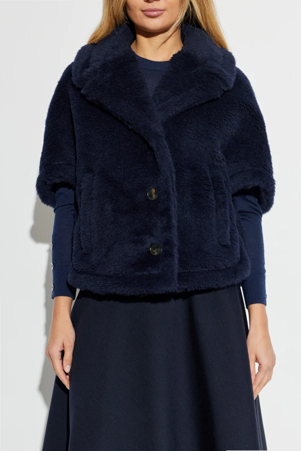 Krótkie futro Corvino1 marki Max Mara to kwintesencja włoskiej elegancji i ponadczasowego wzornictwa. Luksusowa powierzchnia futerkowa, złożona z wysokogatunkowej alpaki, wełny oraz jedwabiu, zachwyca głębokim, granatowym odcieniem i gęstością miękkiego włosia. Lekko oversize’owy krój o zaokrąglonych ramionach i swobodnych rękawach za łokieć tworzy nowoczesną sylwetkę typu cape, podkreśloną szerokim kołnierzem z wywinięciem.