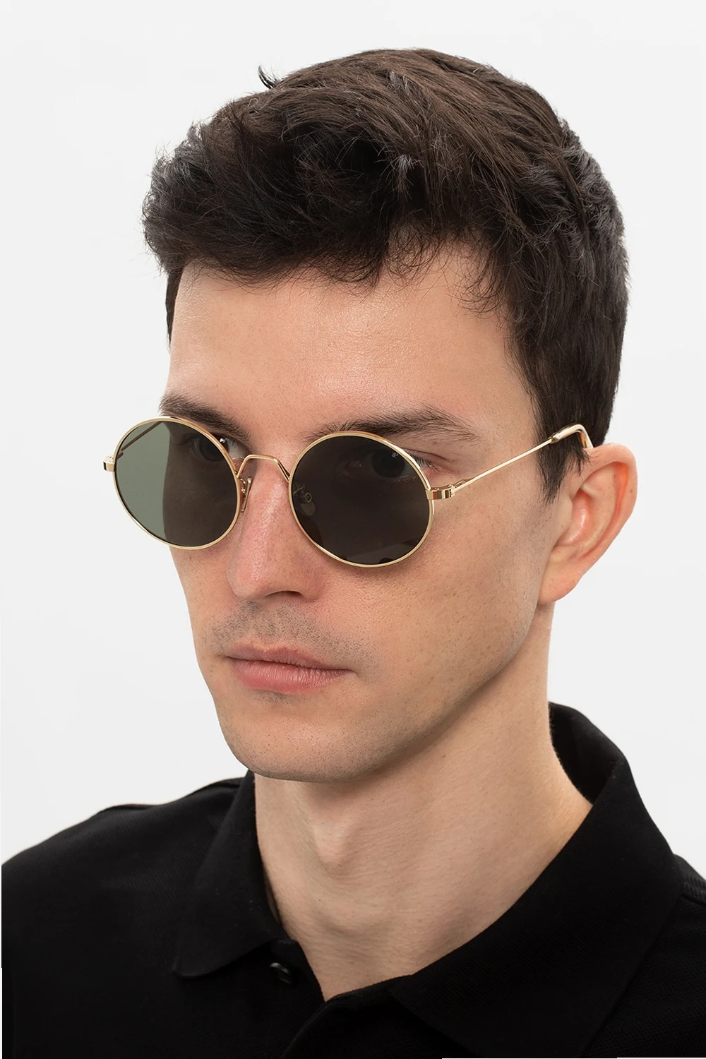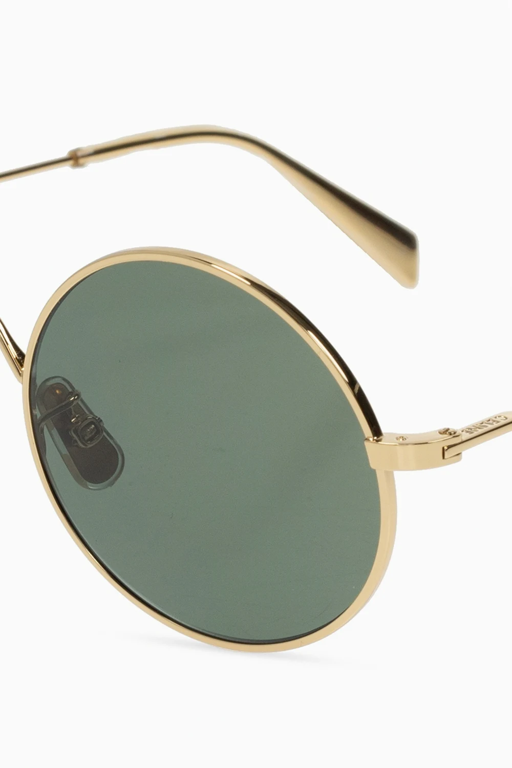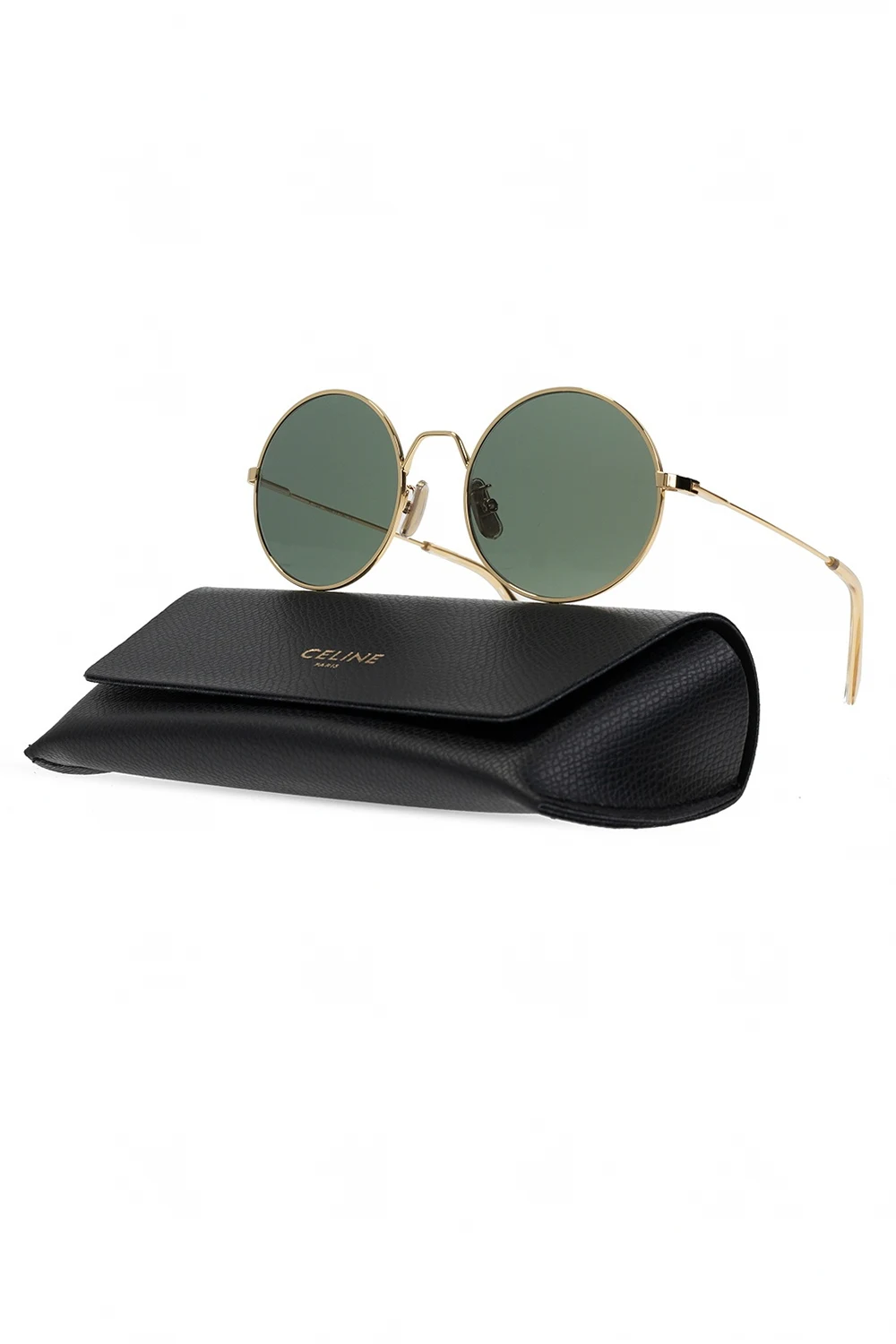 Okrągłe okulary przeciwsłoneczne w kolorze złotym Celine. Z boku wytłoczone logo. Czarne, certyfikowane soczewki 100% UVA i UVB.
