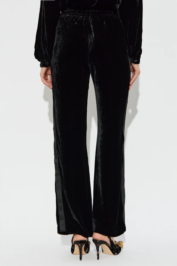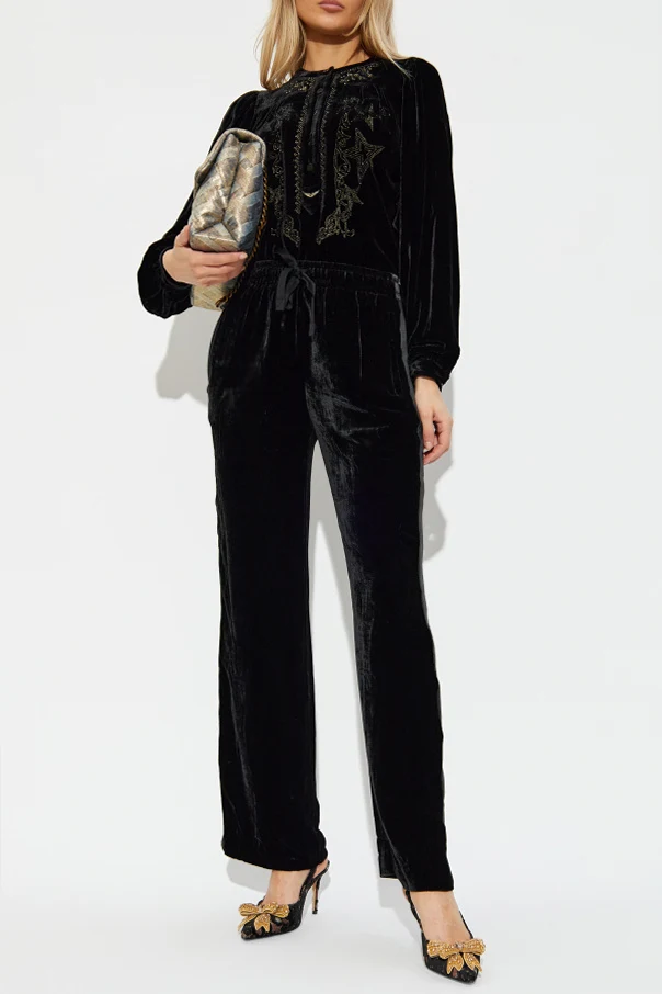 Welurowe spodnie ‘Poma’ marki Zadig & Voltaire to wyraz kunsztu współczesnej mody, inspirowanej subtelną dekadencją oraz paryskim szykiem. Uszyte z miękkiego, wysokogatunkowego weluru, łączącego szlachetną wiskozę z wyśmienitym jedwabiem, zyskują zmysłowy połysk i wyjątkowy komfort noszenia.