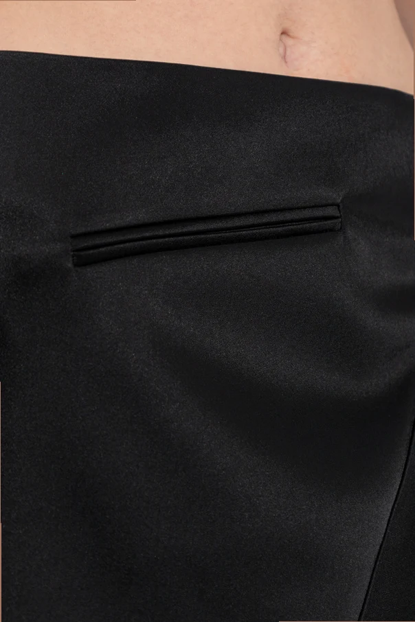 Ta ekskluzywna satynowa spódnica marki Courrèges zachwyca śmiałą, modernistyczną linią oraz wyrafinowaną prostotą. Projekt o konstrukcji mini wyróżnia się niezwykle krótkim przodem oraz wydłużonym, asymetrycznym panelem bocznym, który subtelnie opada wzdłuż nogi, tworząc rzeźbiarski efekt i podkreślając nowoczesny charakter całości.