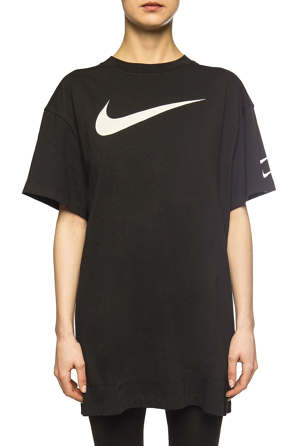 Czarny, bawełniany t-shirt Nike. Ozdobiony nadrukowanym logo w kolorze białym. Okrągły dekolt.