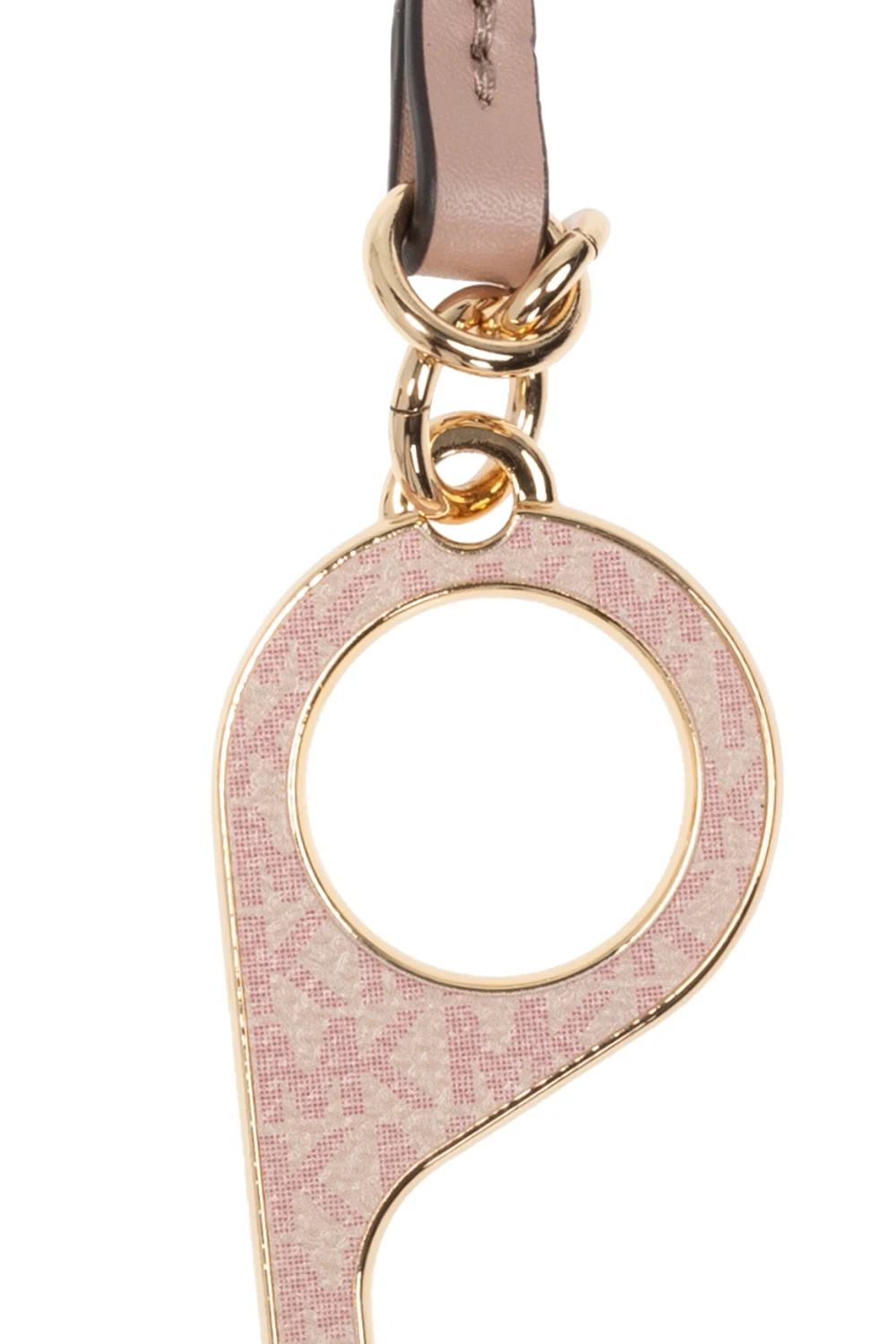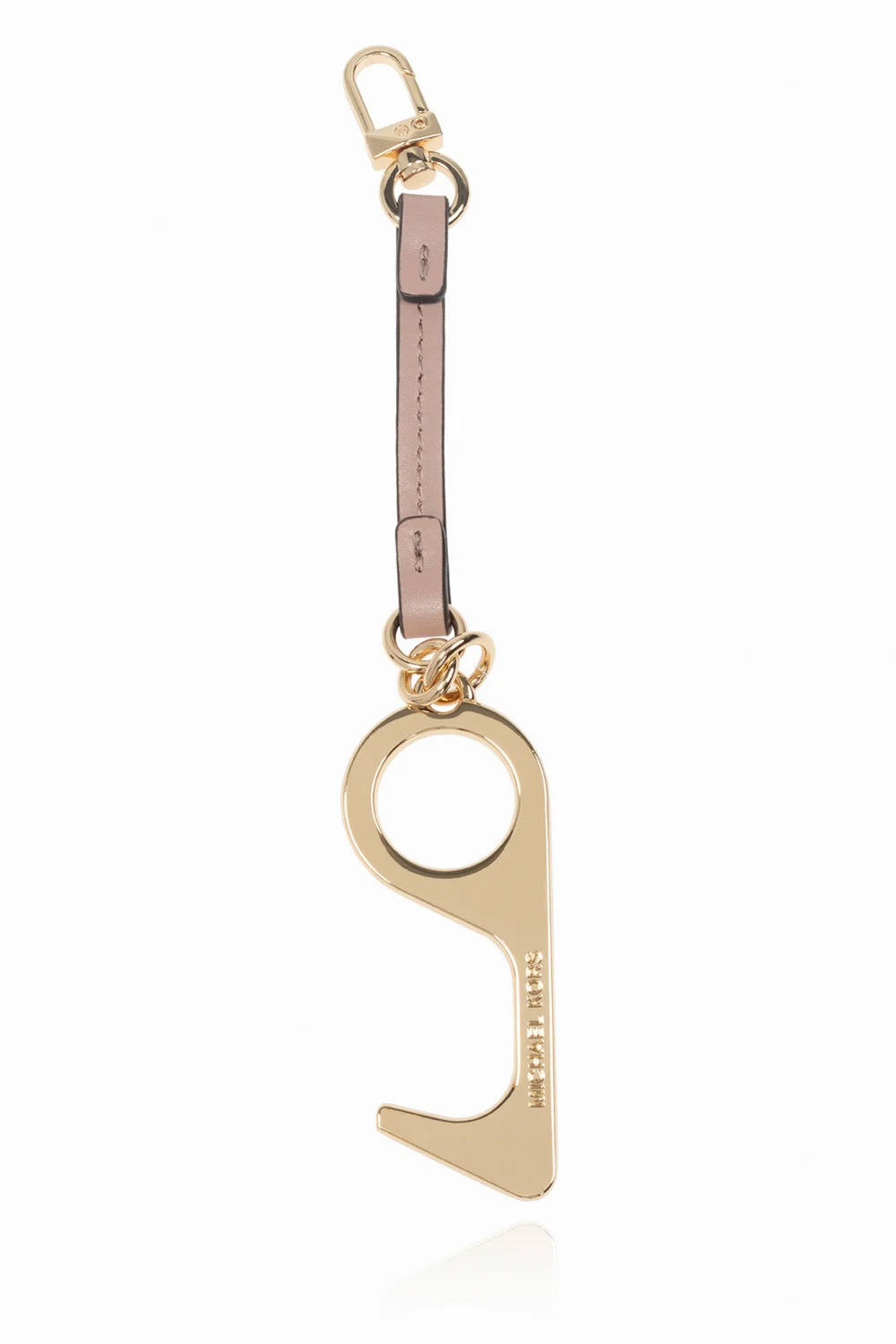 Brelok do kluczy w kolorze złotym Michael Michael Kors. Ozdobiony dekoracyjną zawieszką w kolorze różowo-beżowym.