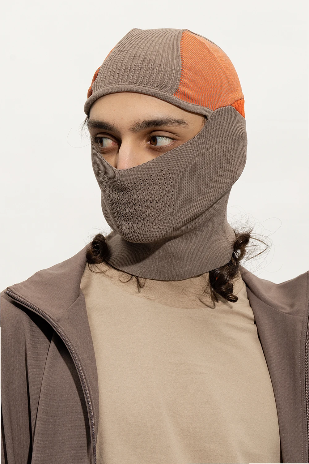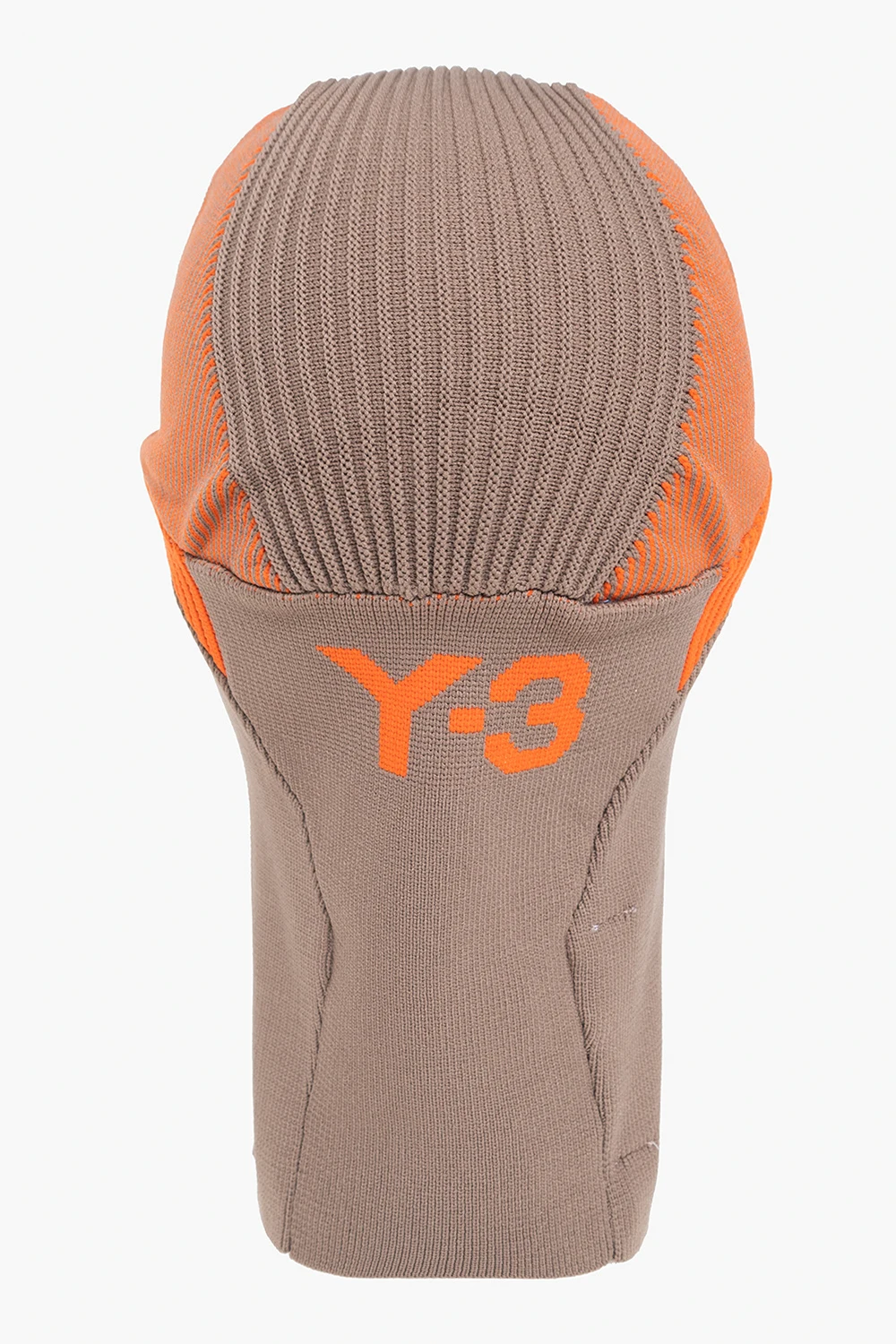 Beżowo-pomarańczowa kominiarka Y-3 Yohji Yamamoto. Z tyłu wyszyte logo.