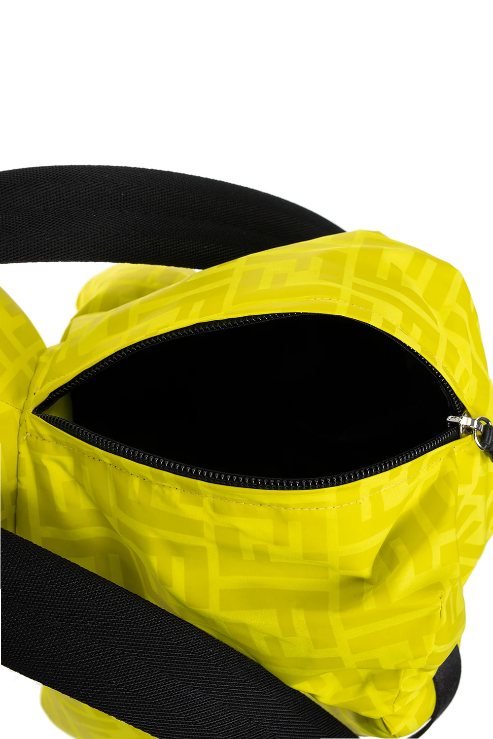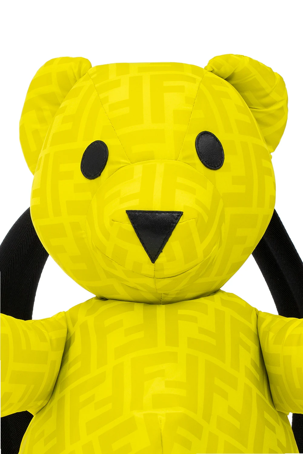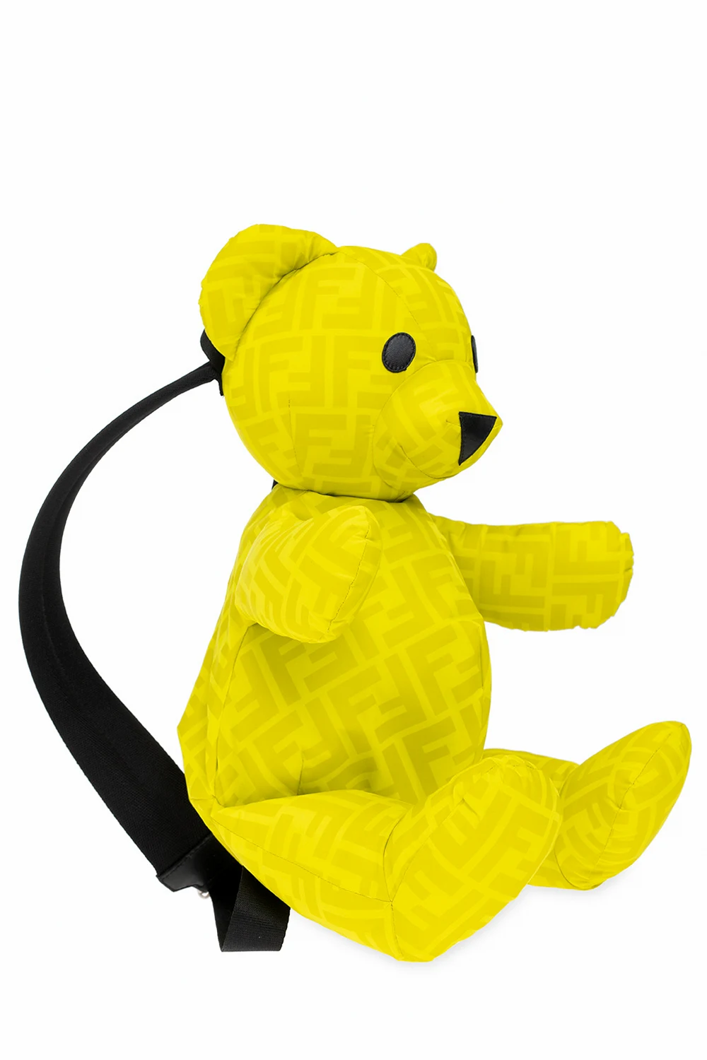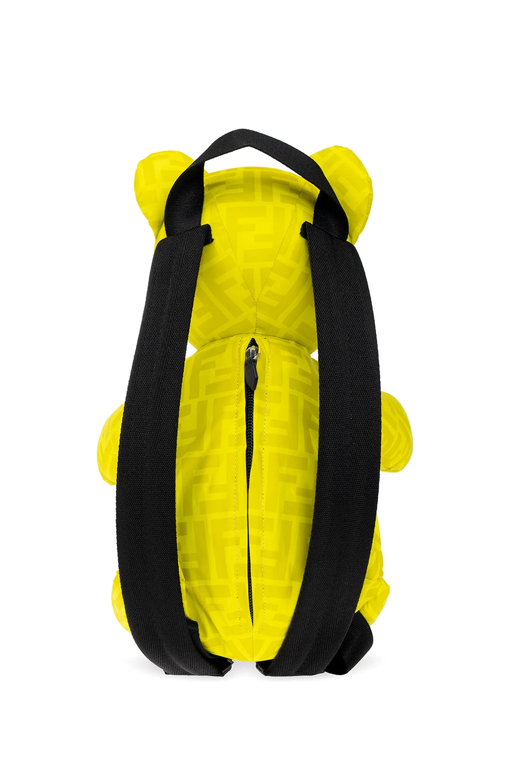 Żółtozielono-czarny plecak w kształcie misia Fendi Kids. Wykonany z materiału ozdobionego monogramem. Zamykany na zamek. Półokrągła rączka. Regulowane szelki. Wewnątrz komora.
