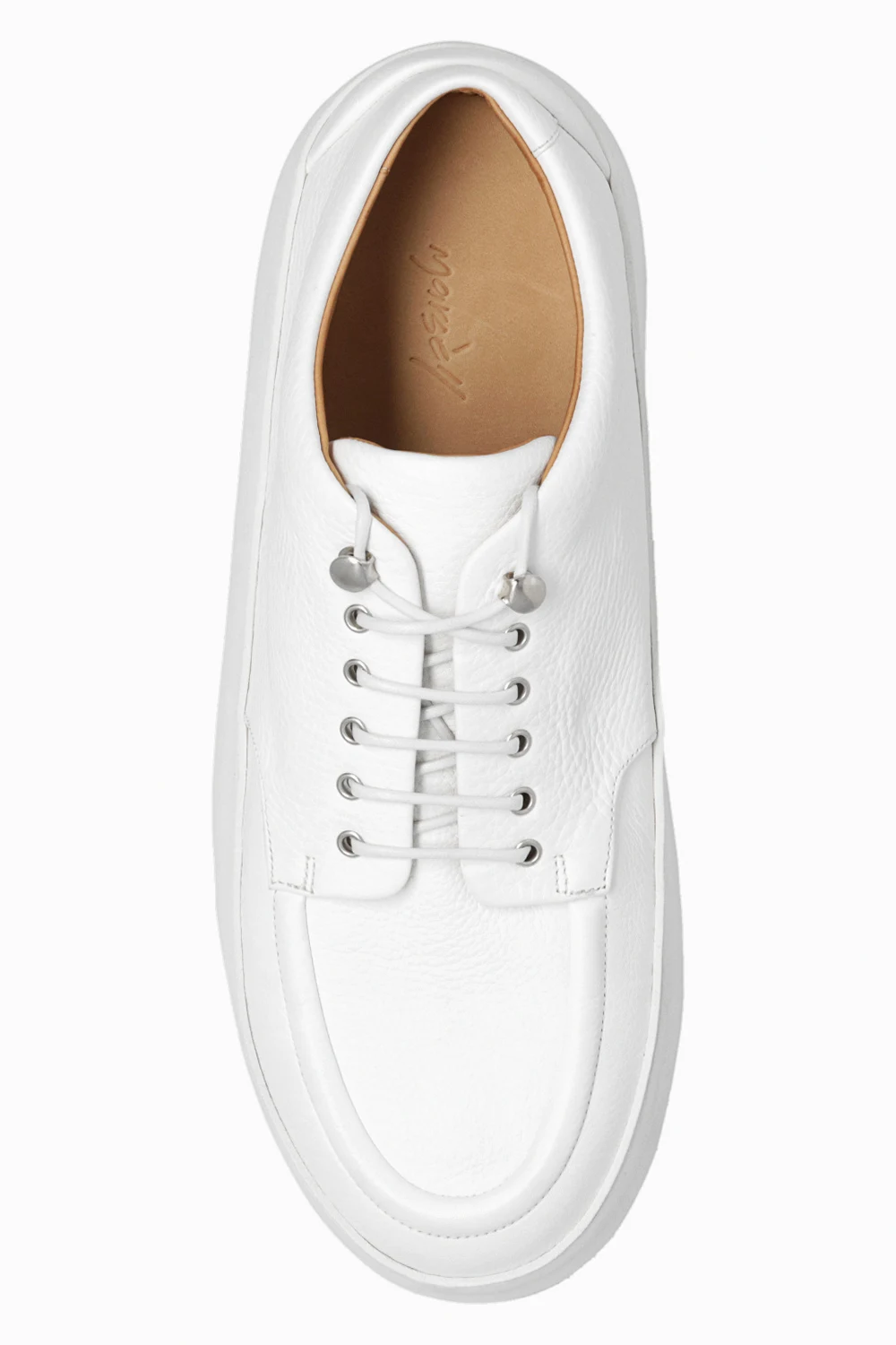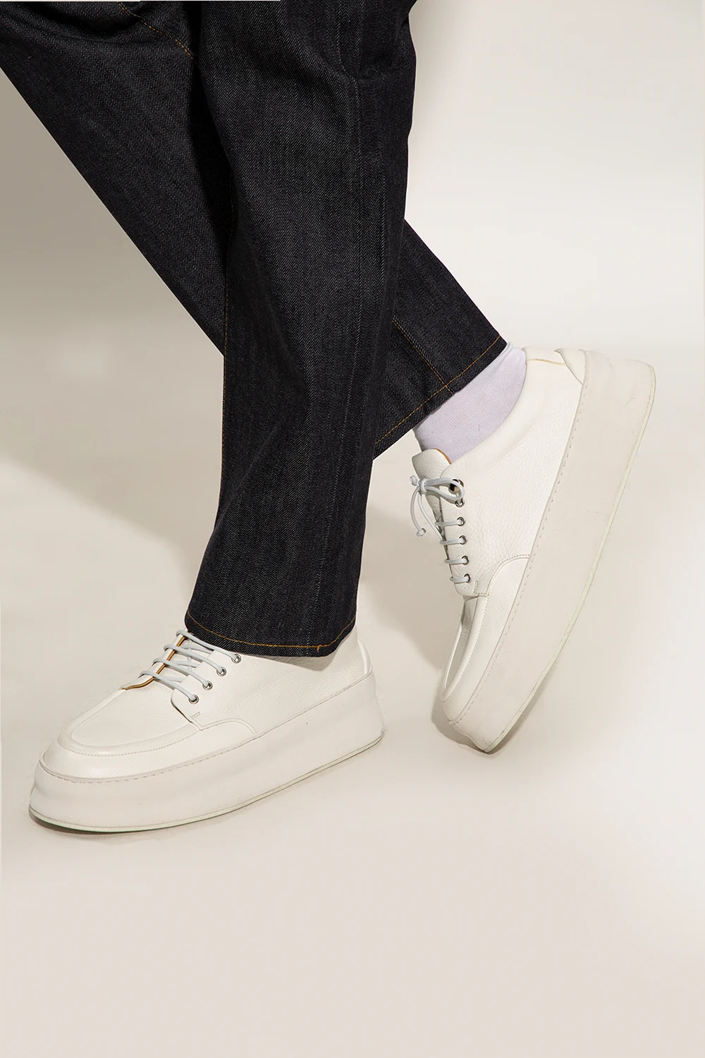 Białe, sznurowane buty, model ‘Cassapana’ Marsell. Wykonane ze skóry. Gruba, gumowa podeszwa.