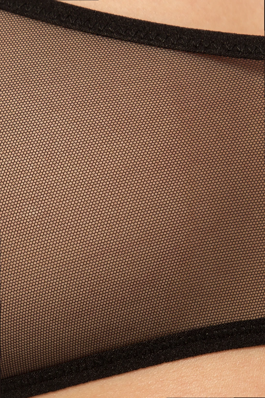 Czarny, transparentny biustonosz Ann Demeulemeester. Ozdobiony przeszyciami.