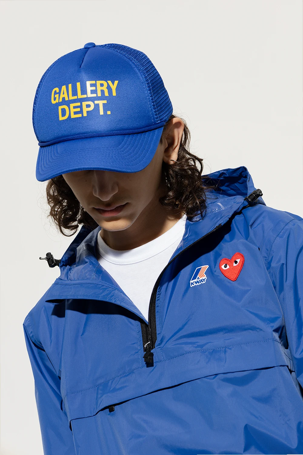 Niebieska czapka z daszkiem GALLERY DEPT. Ozdobiona żółtym wzorem z logo. Z tyłu zapięcie na zatrzask.