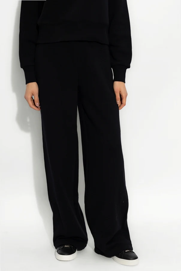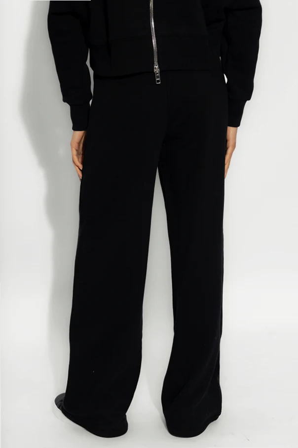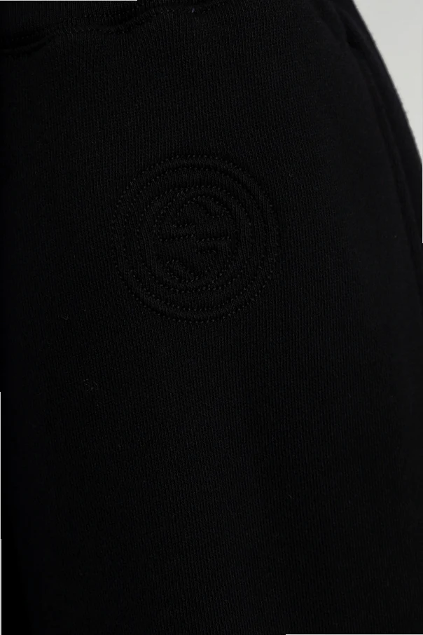Czarne, bawełniane spodnie dresowe Gucci. W pasie ściągane trokami. Ozdobione wyszytym logo. Z przodu dwie kieszenie. Szerokie nogawki o prostym kroju.