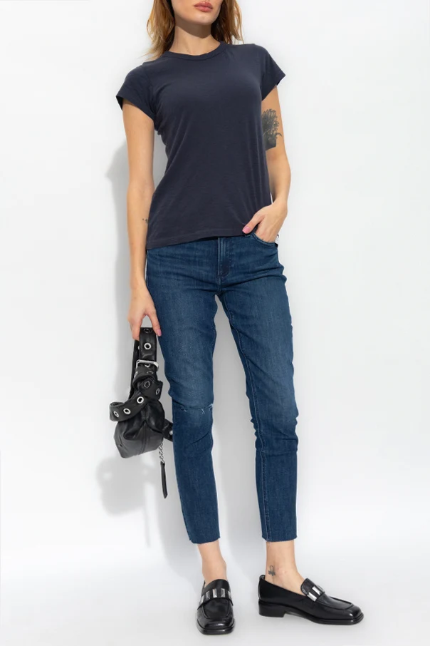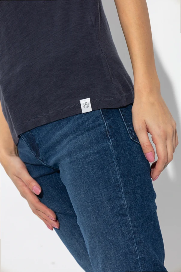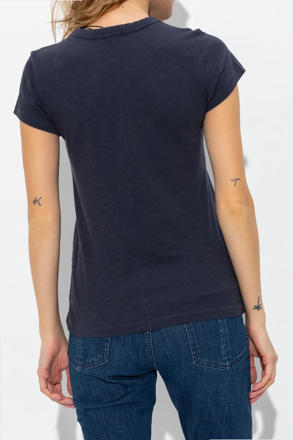 Granatowy t-shirt Rag & Bone. Wykonany z bawełny organicznej Pima. Okrągły dekolt. Krótkie rękawy.
