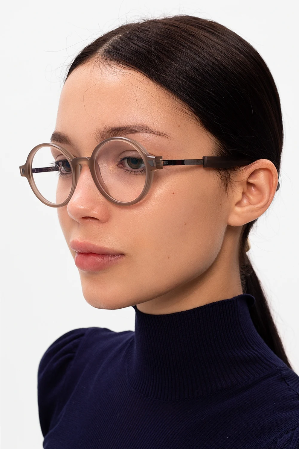 Brązowe, transparentne okulary korekcyjne, model ‘MMRAW018’ Mykita x Maison Margiela. Wykonane ręcznie. Dołączone etui z logo.