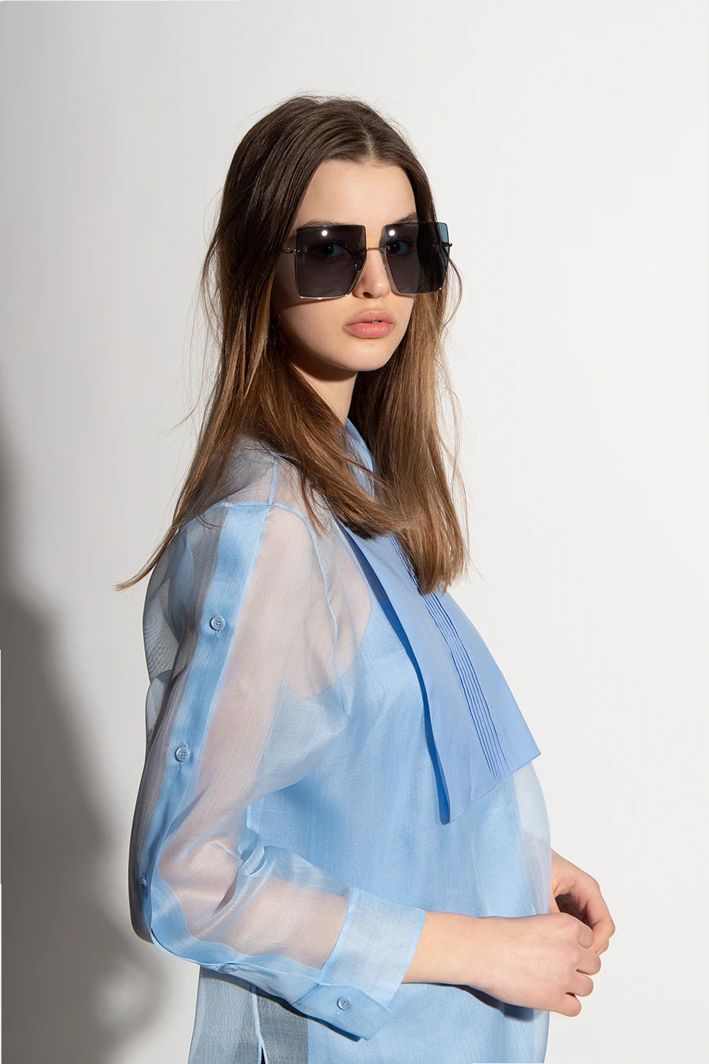 Okulary przeciwsłoneczne w kolorze złotym Fendi. Z boku wytłoczone logo. Niebieskie, certyfikowane soczewki ze 100% ochroną UVA i UVB.