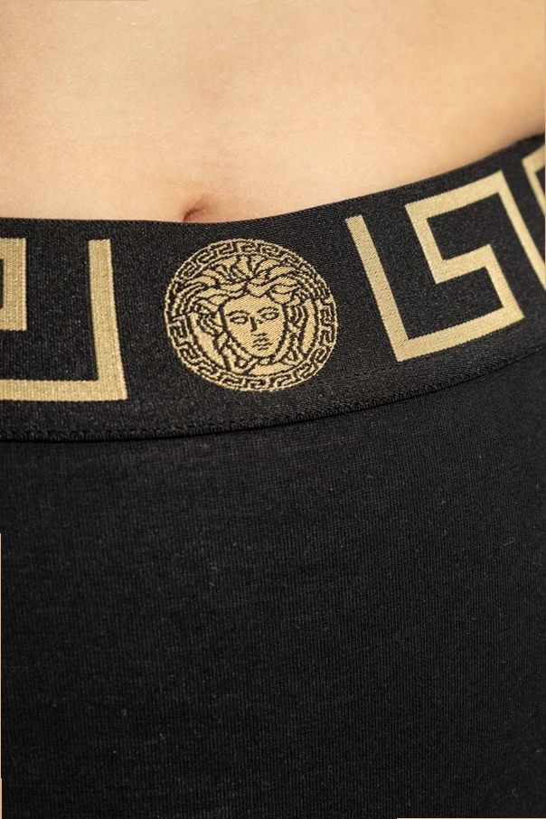 Prezentujemy Państwu ekskluzywne figi z wysokim stanem od Versace , które łączą w sobie klasyczną elegancję z nowoczesnym designem. Projekt ten charakteryzuje się pełnym krojem gwarantującym wygodę noszenia oraz wysokim stanem, zapewniającym pełne pokrycie. Wyróżnia go również wyjątkowy, geometryczny wzór w kolorze złotym ozdabiający pas, dodającym produktowi niepowtarzalnego charakteru.
