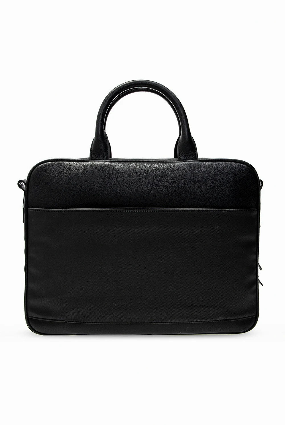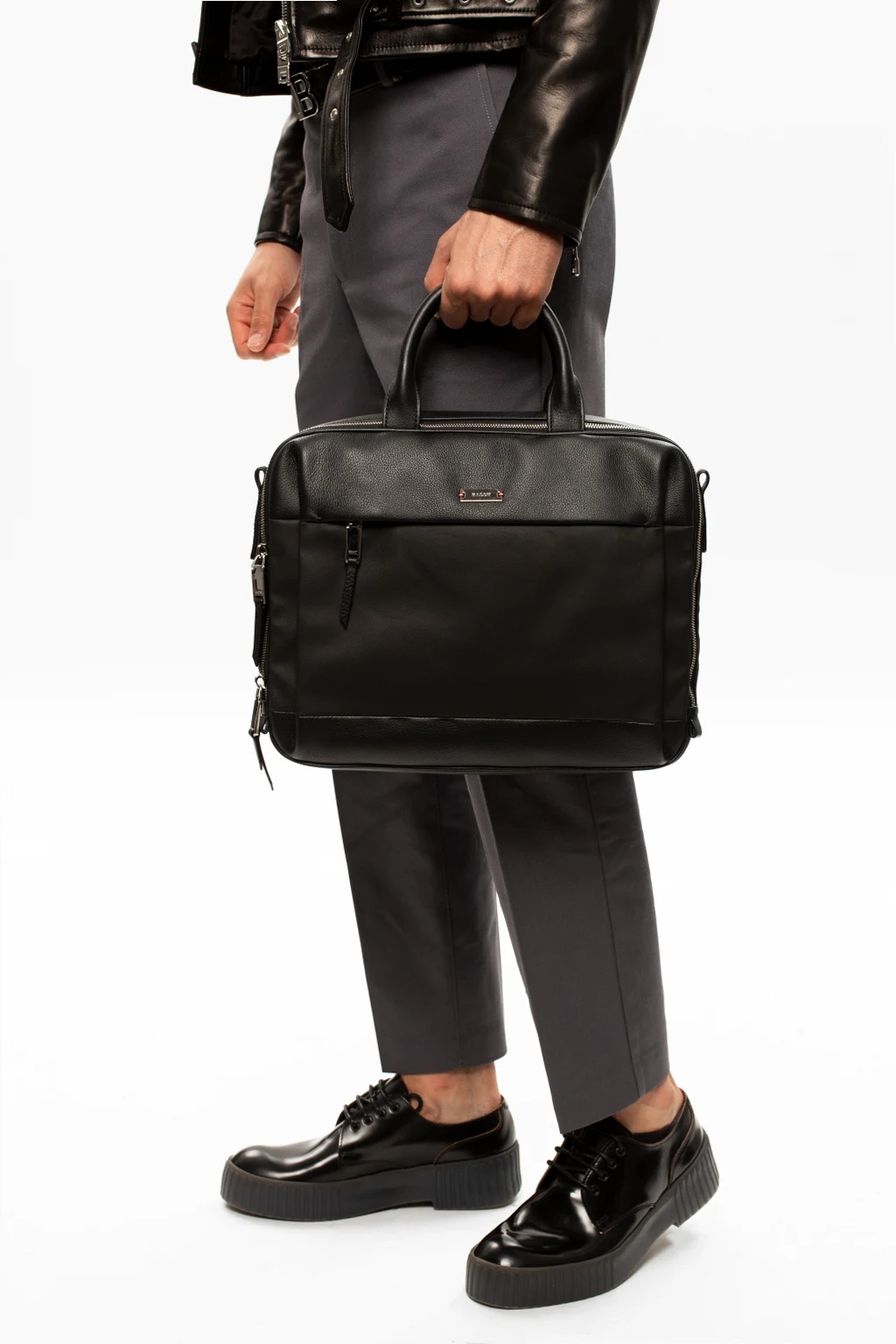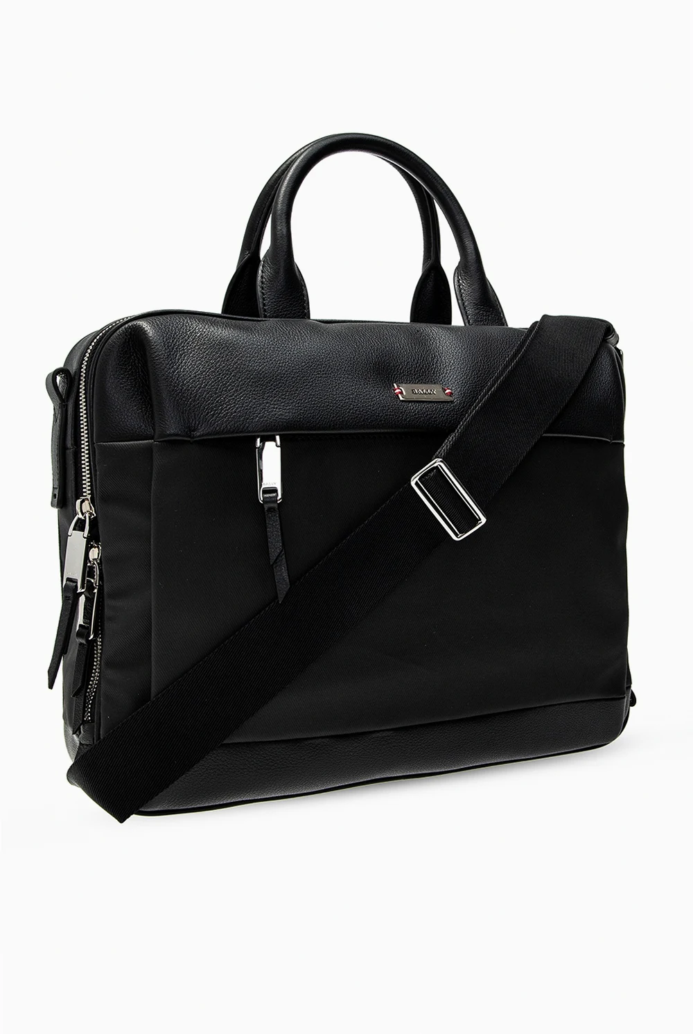 Czarna aktówka model ‘Vaud’ Bally. Zamykana na dwubiegunowy zamek. Ozdobiona metalową aplikacją z logo w kolorze srebrnym. Z przodu kieszeń zapinana na zamek. Z tyłu kieszeń zapinana na magnetyczne zapięcie oraz kieszeń wsuwana. Dwie półokrągłe rączki. Odpinany, regulowany pasek na ramię. Wewnątrz komora, siedem wsuwanych kieszeni, dwa miejsca na karty oraz kieszeń zapinana na zamek.