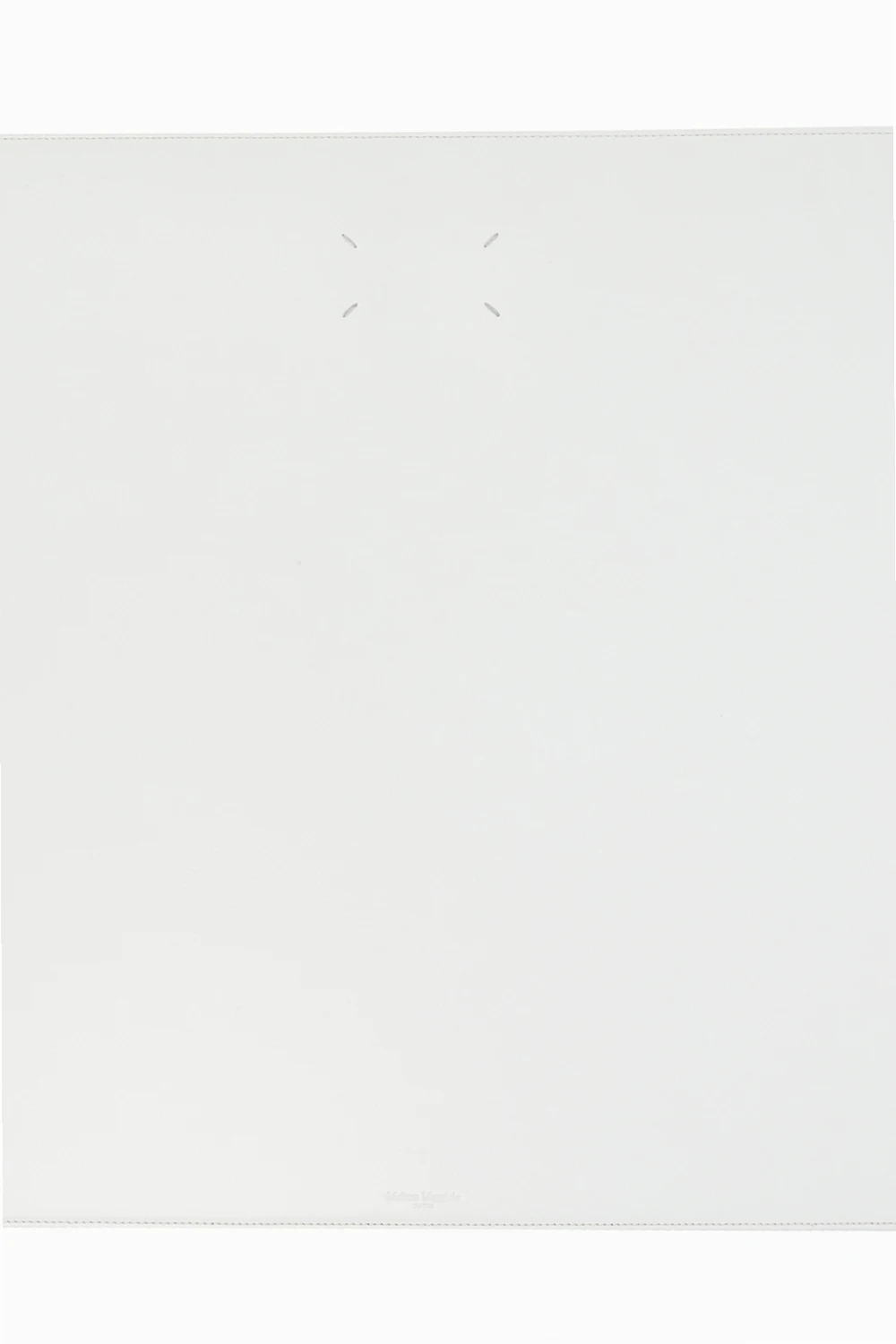 Biała, skórzana podkładka na biurko Maison Margiela. Ozdobiona przeszyciami.