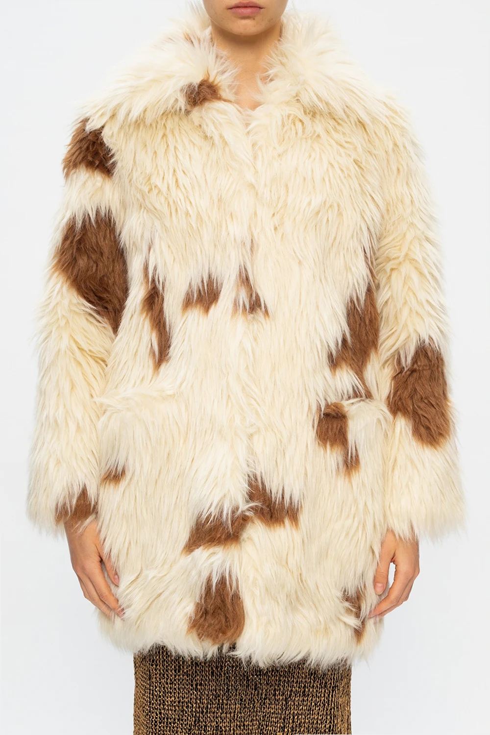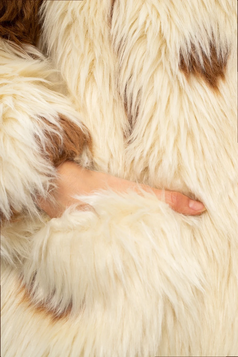 Kremowo-brązowy płaszcz Zadig & Voltaire x DÉFILÉ. Wykonany ze sztucznego futra. Zapinany na zaczepy. Z przodu dwie wsuwane kieszenie. Długie rękawy.