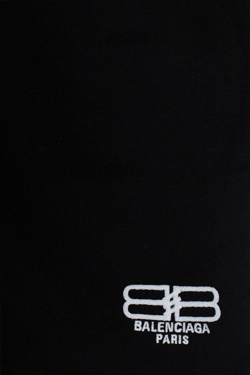 Czarne szorty Balenciaga Kids. Wykonane z bawełny. W pasie wszyta guma. Ozdobione wyszytym wzorem z logo w kolorze białym. Dwie kieszenie wsuwane.