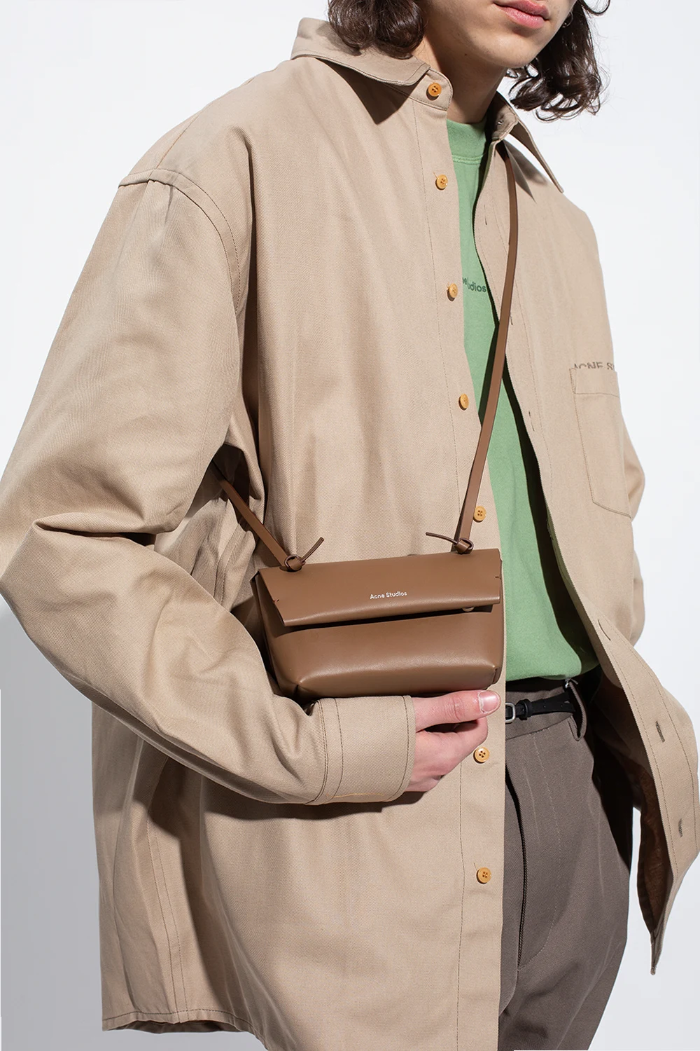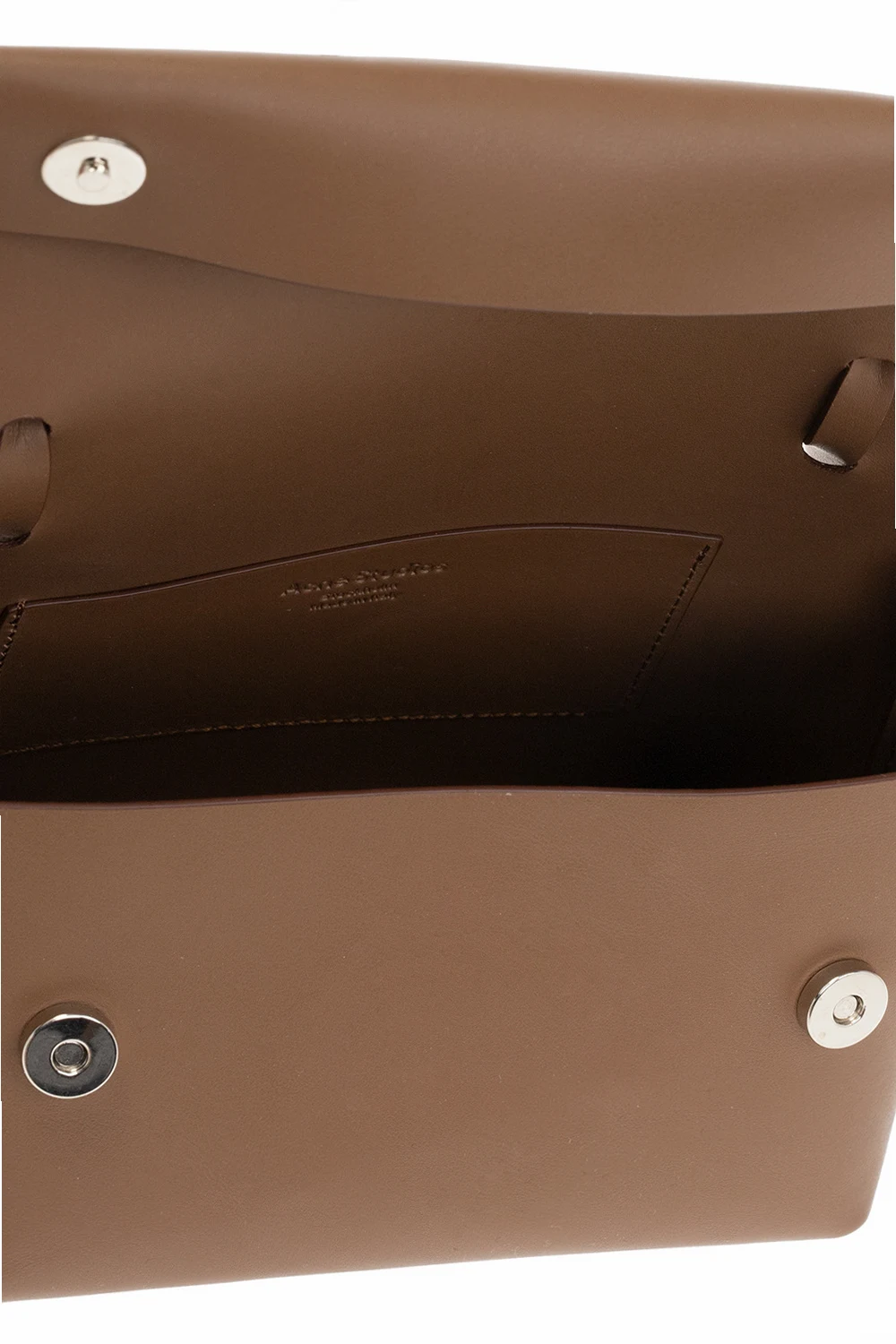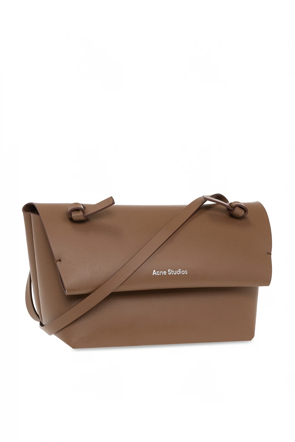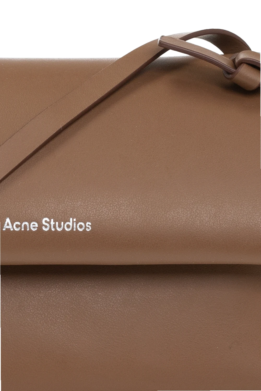 Brązowa torba na ramię Acne Studios. Wykonana ze skóry. Zamykana na magnetyczne zapięcie. Ozdobiona wytłoczonym logo. Pas na ramię. Wewnątrz komora oraz wsuwana kieszeń. Metalowe wykończenie w kolorze srebrnym.