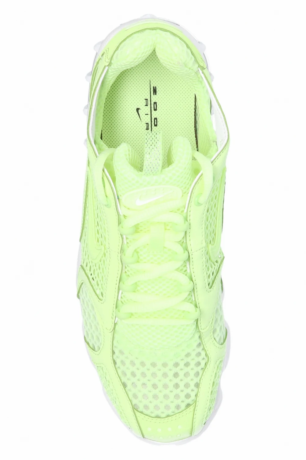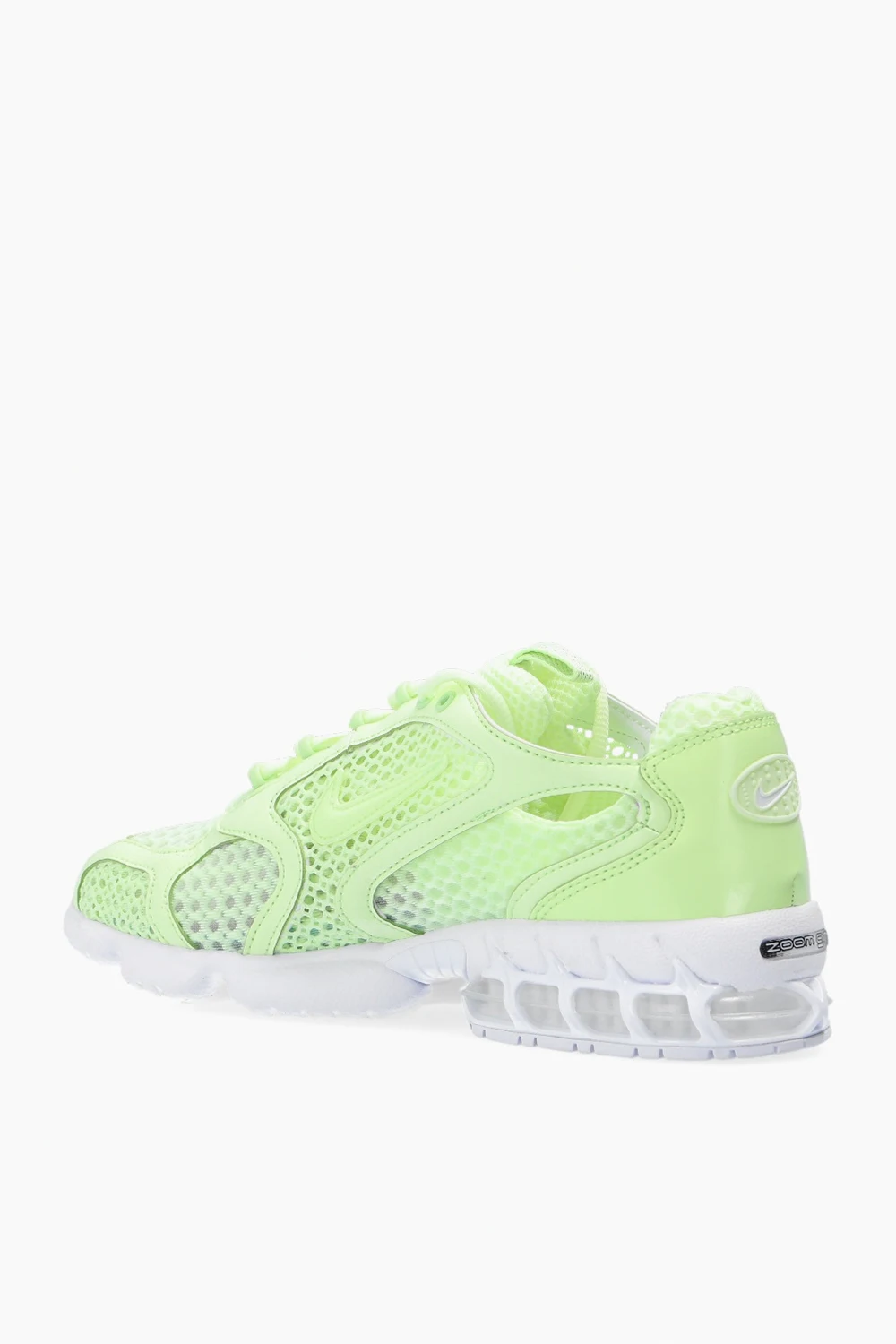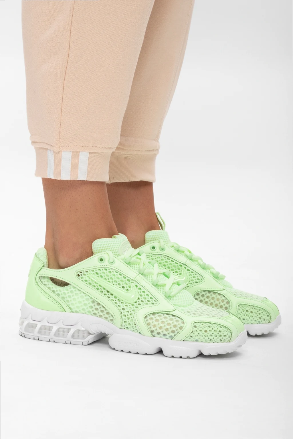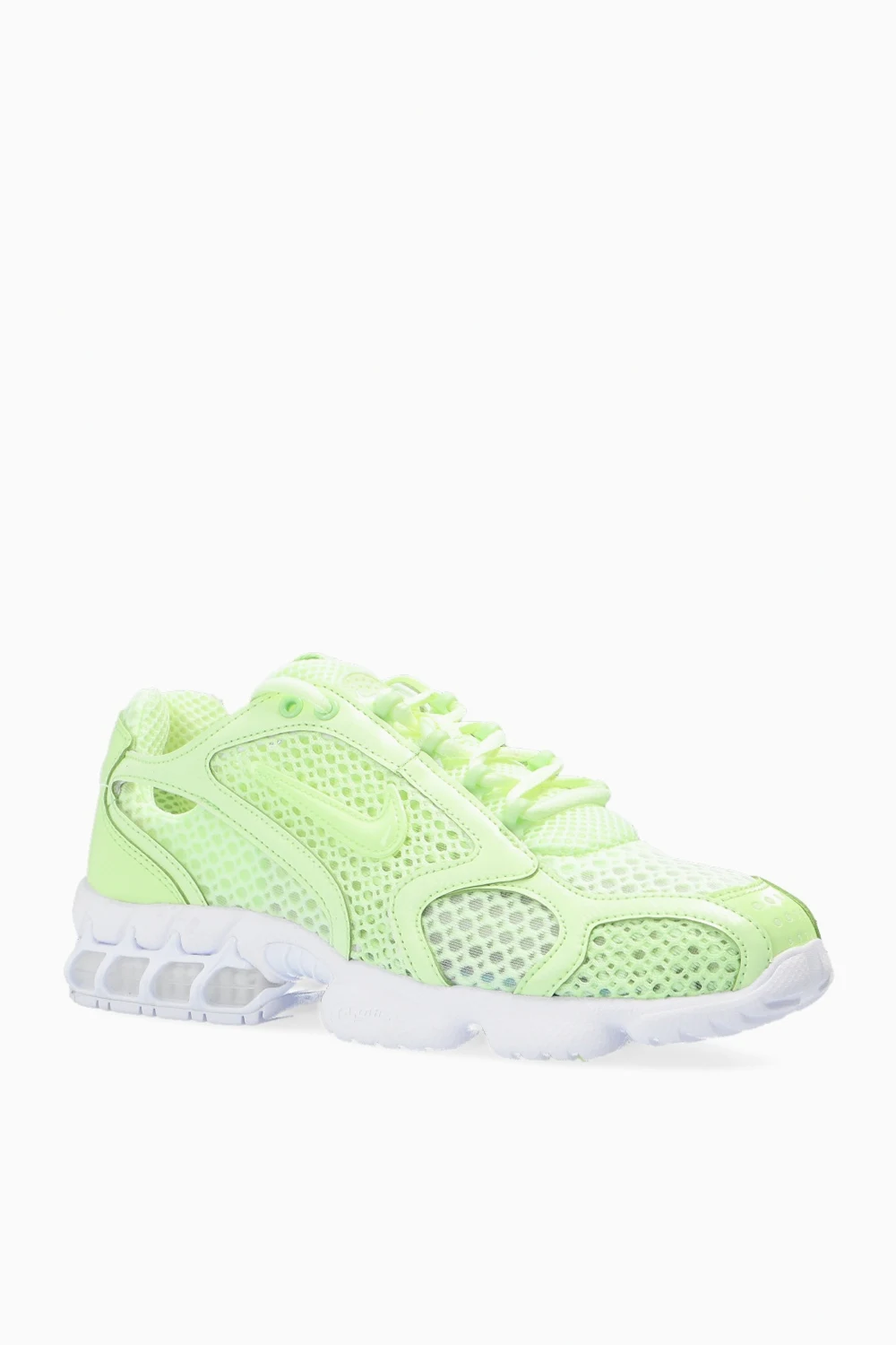 Jasnozielone, sznurowane buty sportowe, model ‘Air Zoom Spiridon Cage 2’ Nike. Wykonane z przewiewnej siatki. Aplikacja z logo. Biała, gumowa podeszwa z systemem amortyzującym Zoom Air z transparentną wstawką.