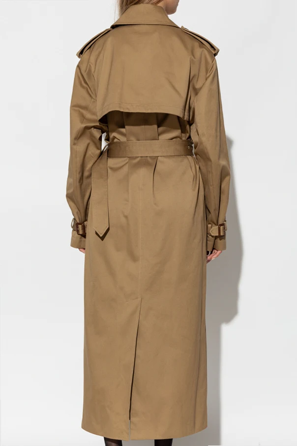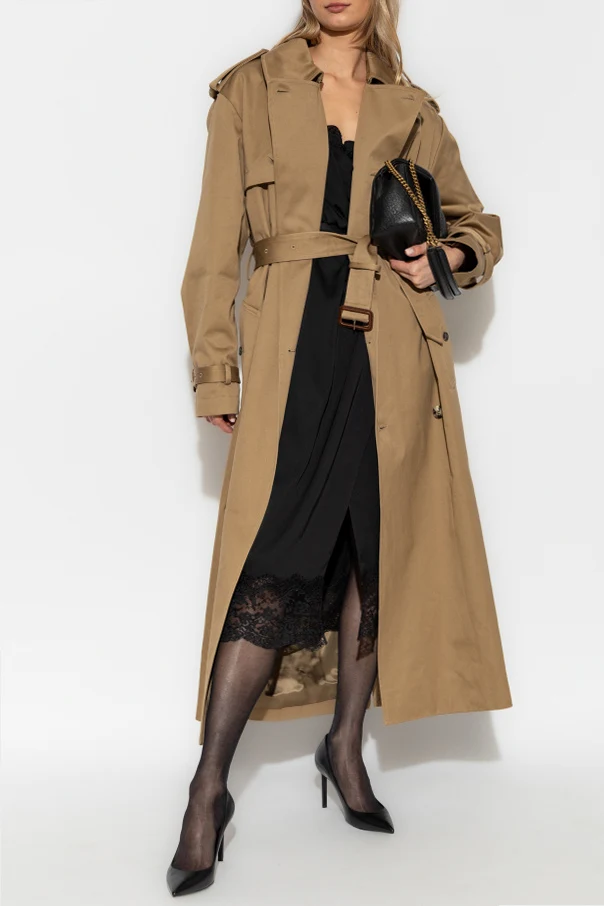 Odkryj ponadczasową elegancję z bawełnianym trenczem z paskiem od ikonicznego domu mody Saint Laurent . Ten beżowy płaszcz urzeka klasycznym krojem sięgającym poniżej kolan, co czyni go idealnym wyborem na każdą okazję. Wykonany z luksusowej bawełny, zapewnia nie tylko komfort, ale i trwałość.