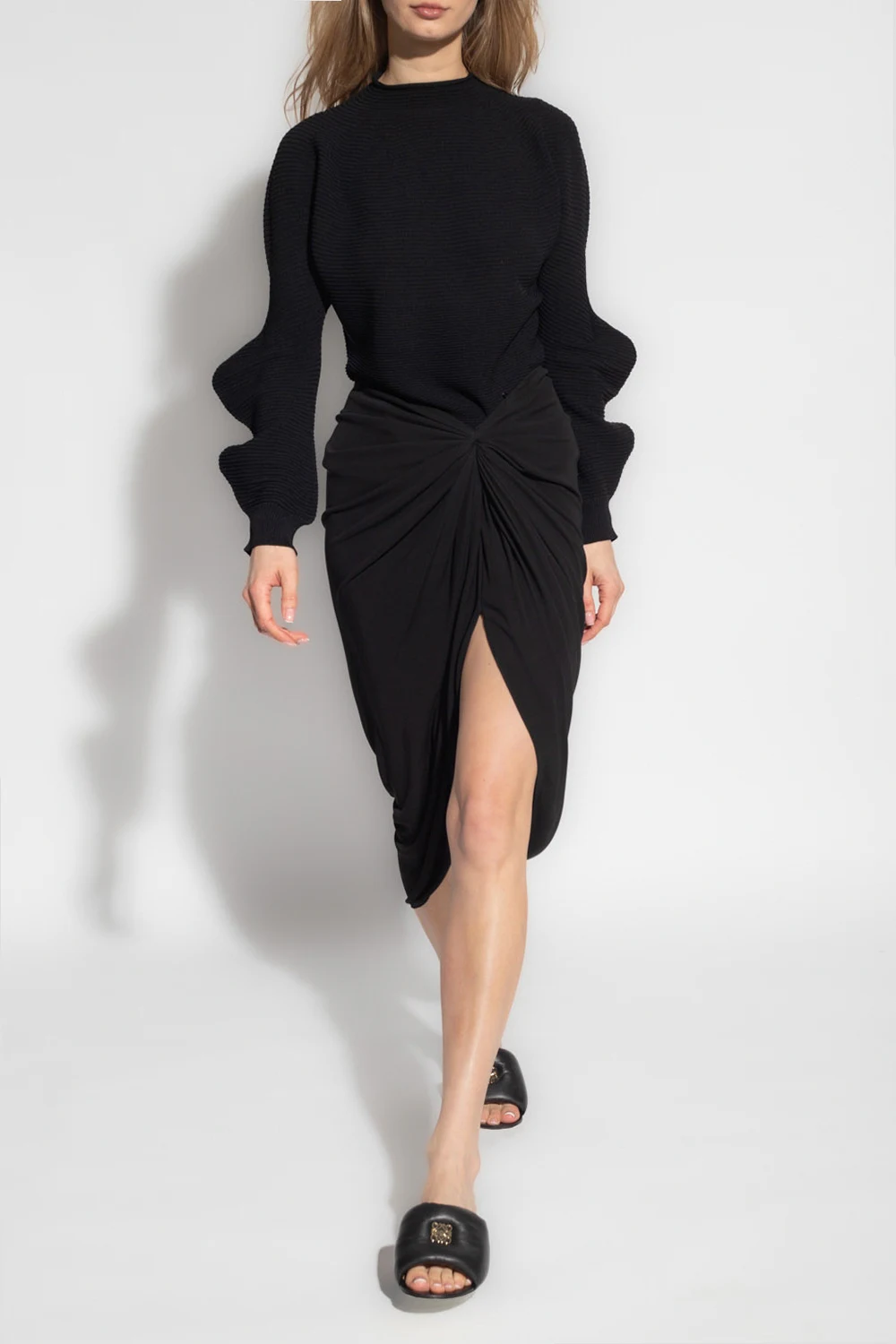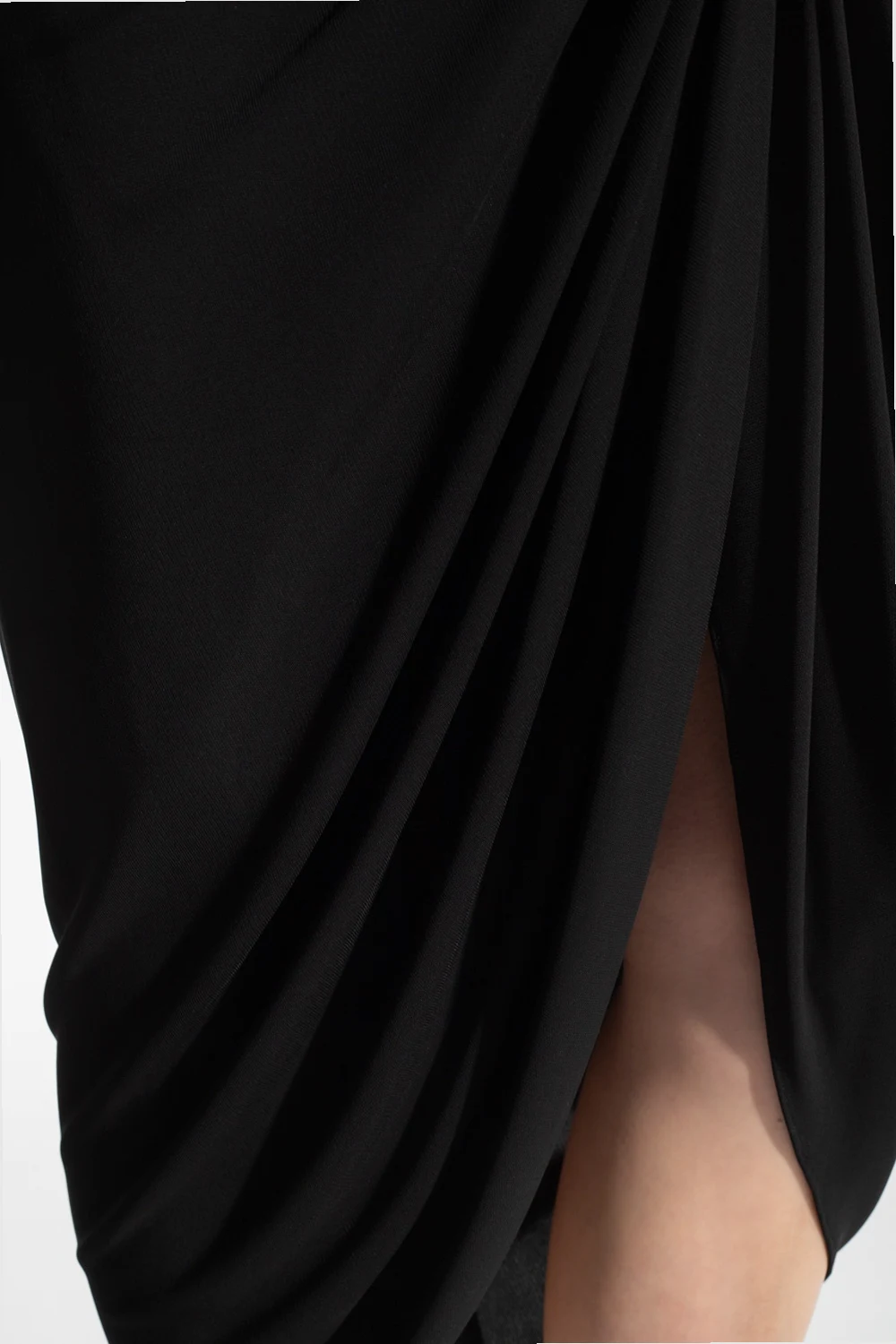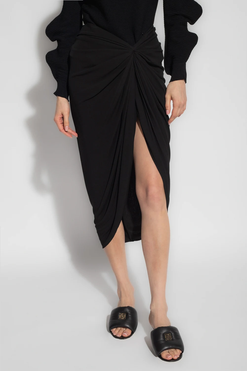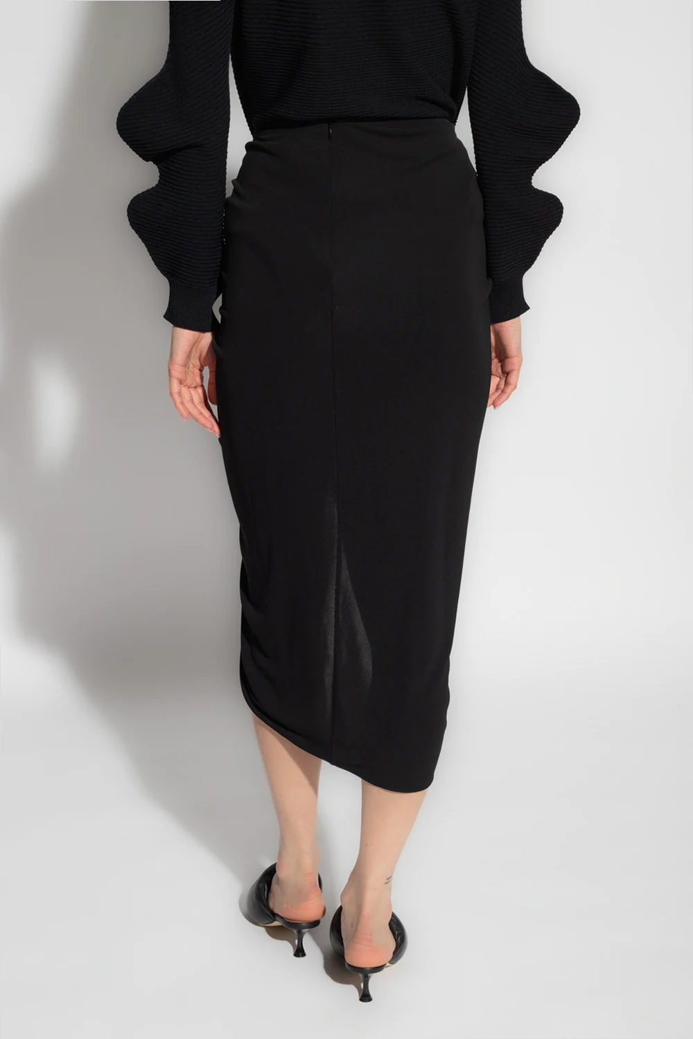 Czarna, dekoracyjnie marszczona spódnica Michael Kors. Z tyłu zapinana na kryty zamek i haftkę. Z przodu pojedyncze rozcięcie.