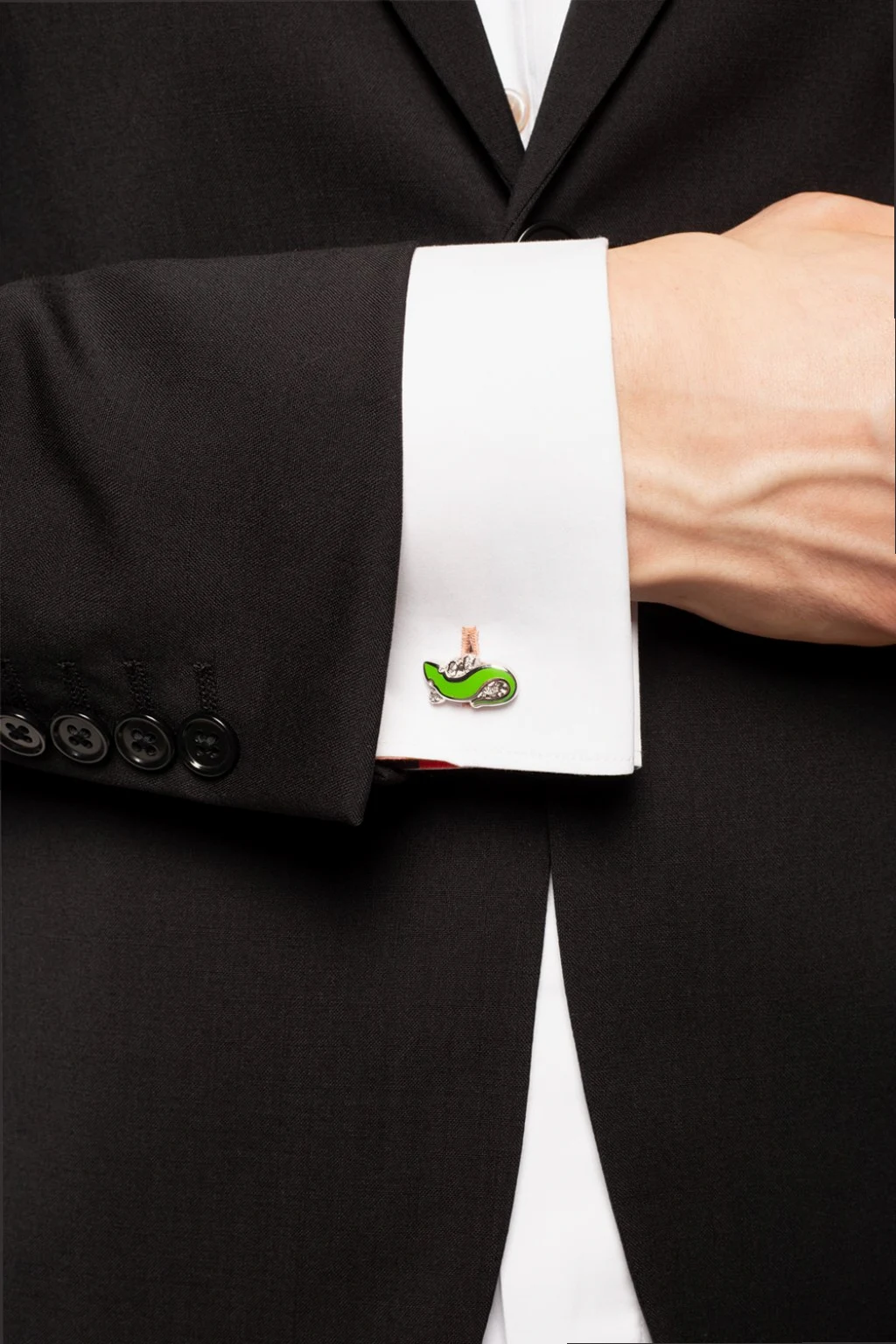Spinki do mankietów w kolorze srebrnym Etro. Ozdobione nadrukowanym wzorem w kolorze zielono-czarnym oraz dekoracyjnymi elementami w kolorze białym.