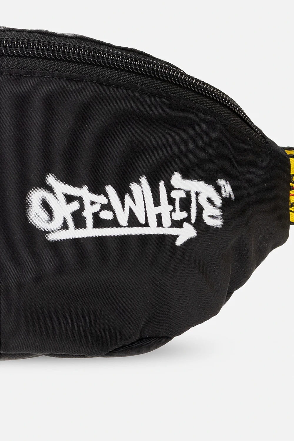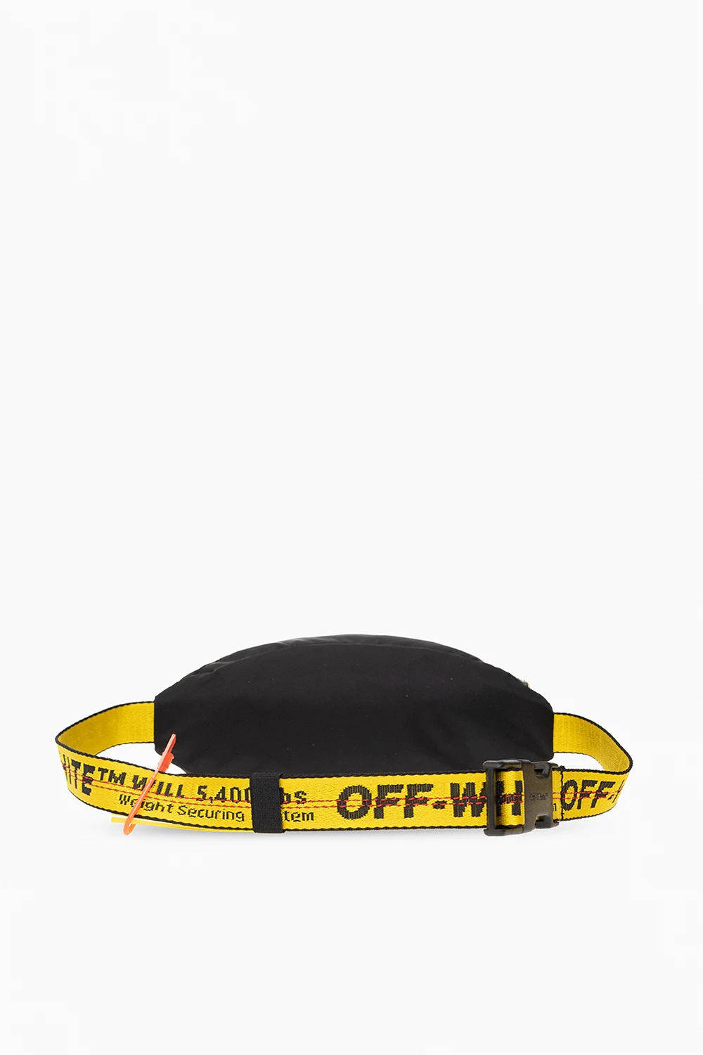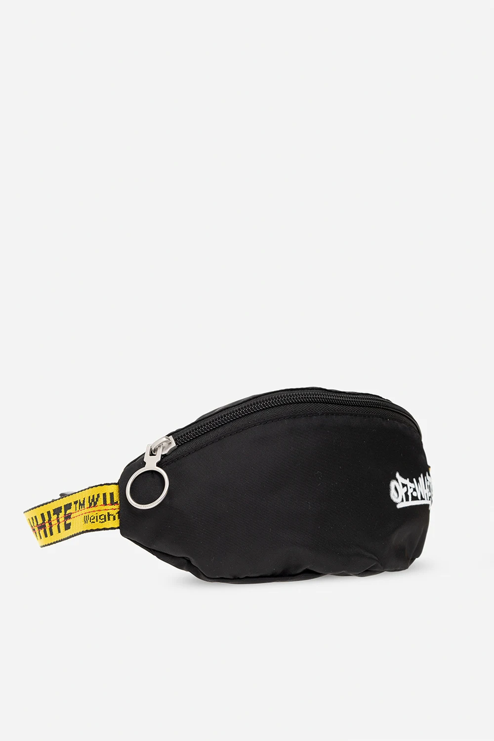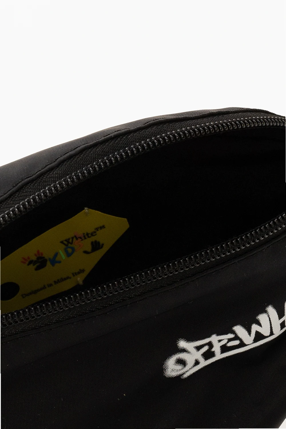 Czarna torba na pas Off-White Kids. Zapinana na zamek. Ozdobiona nadrukiem z logo. Żółty pas biodrowy z możliwością regulacji długości. Wewnątrz komora. Metalowe wykończenie w kolorze srebrnym.