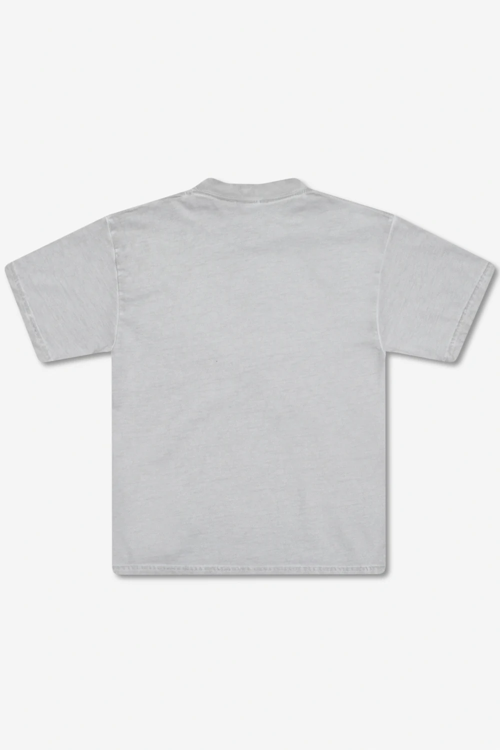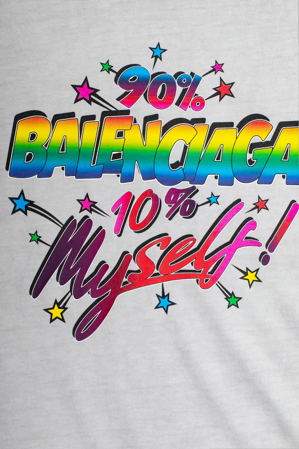 Szary t-shirt Balenciaga Kids. Wykonany z bawełny. Ozdobiony kolorowym, nadrukowanym wzorem z logo. Okrągły dekolt wykończony ściągaczem. Krótkie rękawy.
