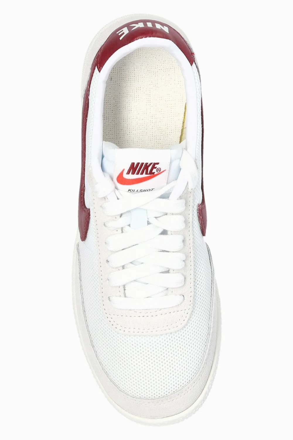 Kremowe, sznurowane buty sportowe, model ‘Killshot OG’ Nike. Wykonane z siatki. Bordowe logo wykonane ze skóry. Zamszowe wstawki w kolorze jasnobeżowym. Kremowa, gumowa podeszwa.