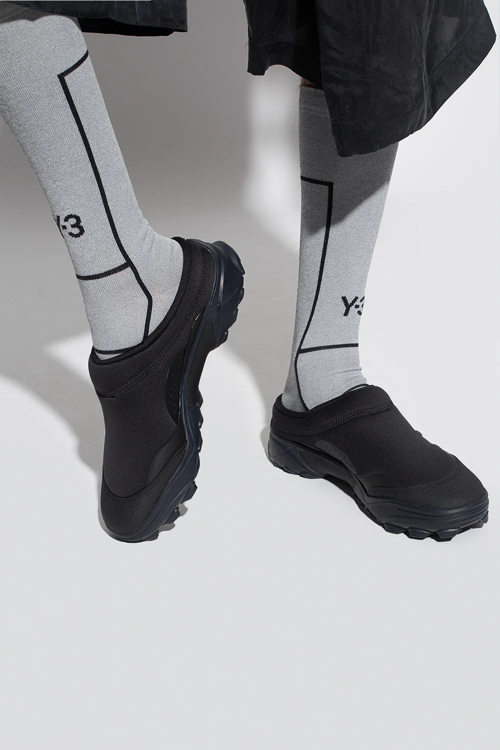 Czarne, wsuwane buty sportowe, model ‘GSG Mule’ ADIDAS Performance x 032C. Wykonane z neoprenu. Z boku charakterystyczne dla marki trzy paski. Amortyzacja Adiprene. Czarna, gumowa podeszwa z systemem wypustek Traxion, zapewniającym doskonałą przyczepność.
