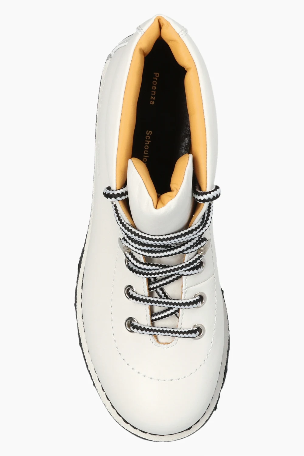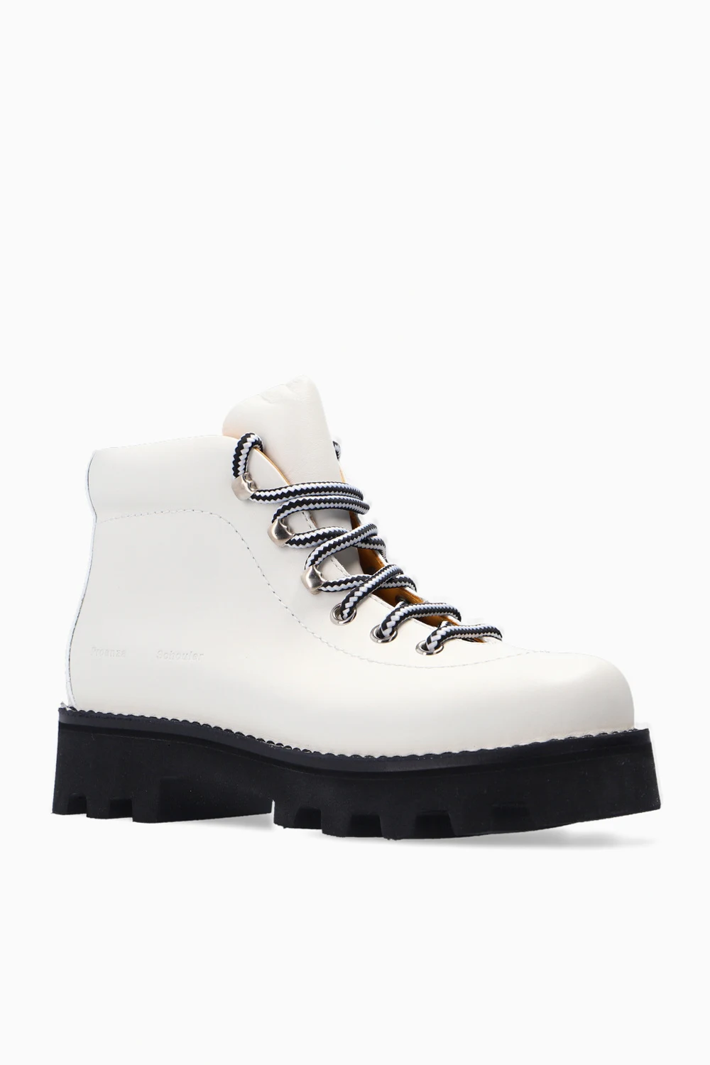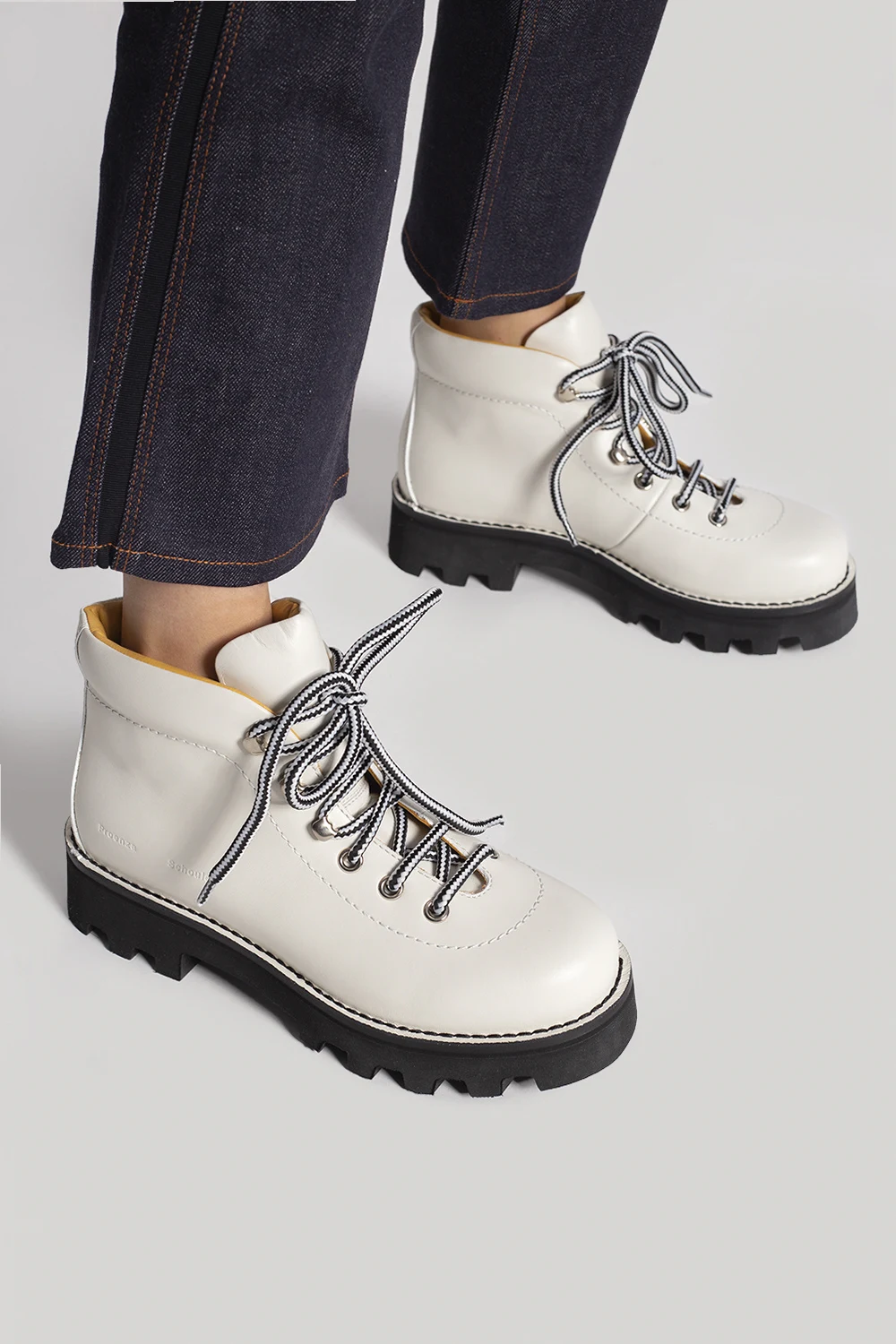 Kremowe, sznurowane trapery, model ‘Heidi Folk’ Proenza Schouler. Wykonane ze skóry cielęcej. Z boku wytłoczone logo. Czarna, gumowa podeszwa.