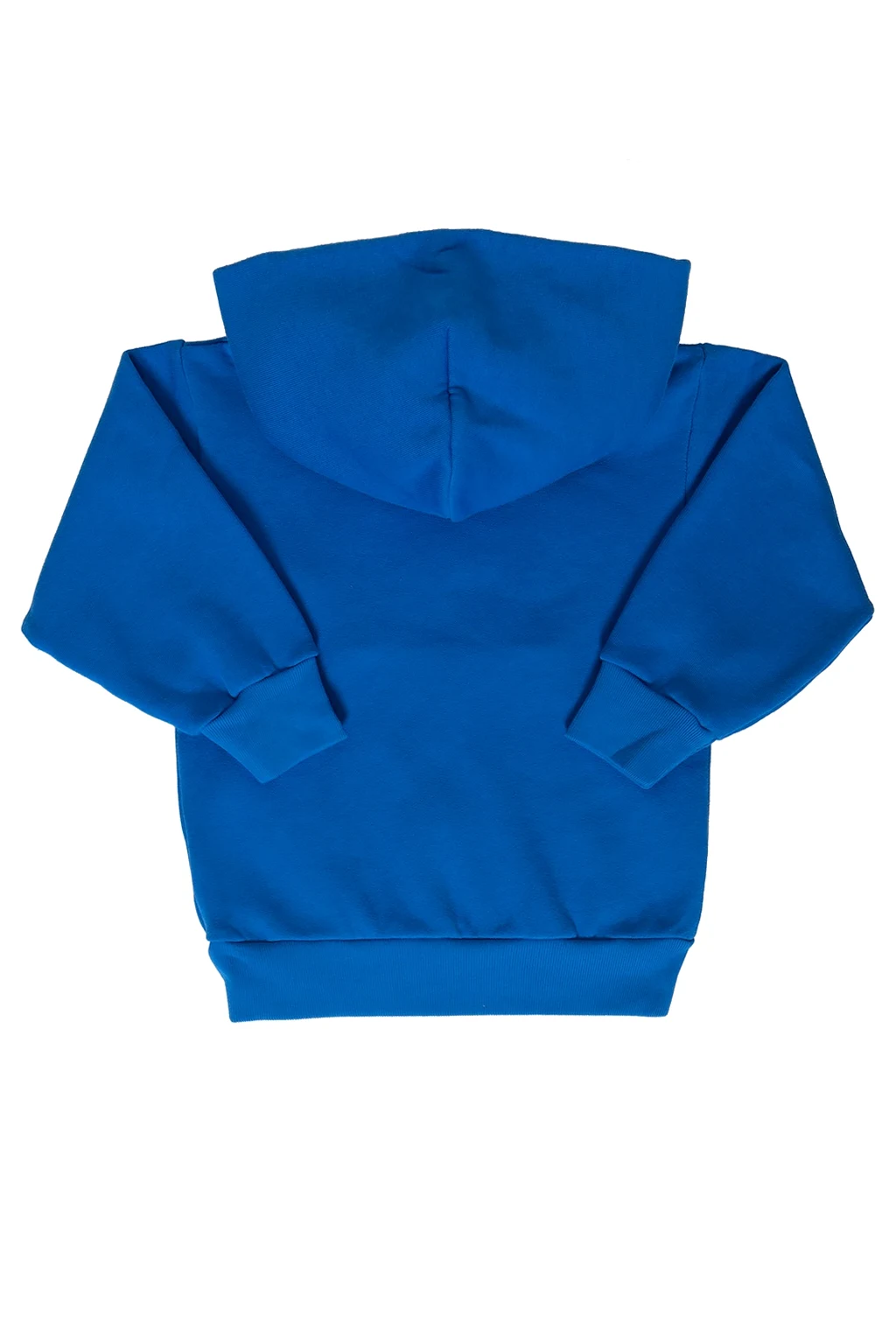 Niebieska, bawełniana bluza z kapturem Balenciaga Kids. Ozdobiona nadrukowanym logo w kolorze białym. Z przodu wsuwana kieszeń. Dół i rękawy zakończone ściągaczami.