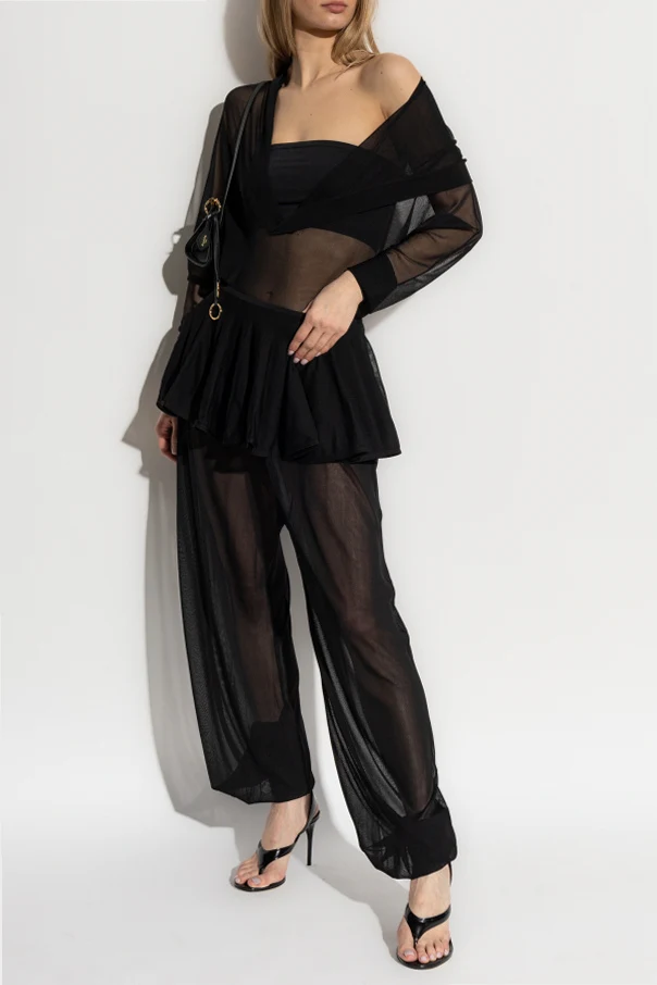 Przedstawiamy transparentne body z kapturem z ekskluzywnej kolekcji znanego projektanta Alaïa . To niezwykle elegancki element garderoby, który emanuje nowoczesnym szykiem i wyrafinowaną estetyką.