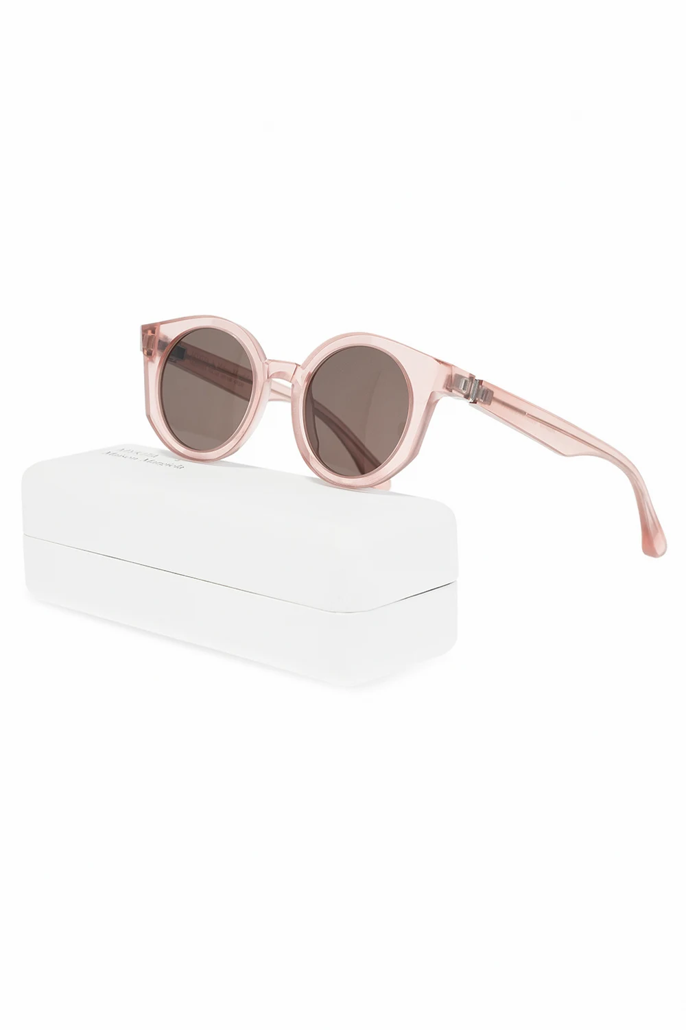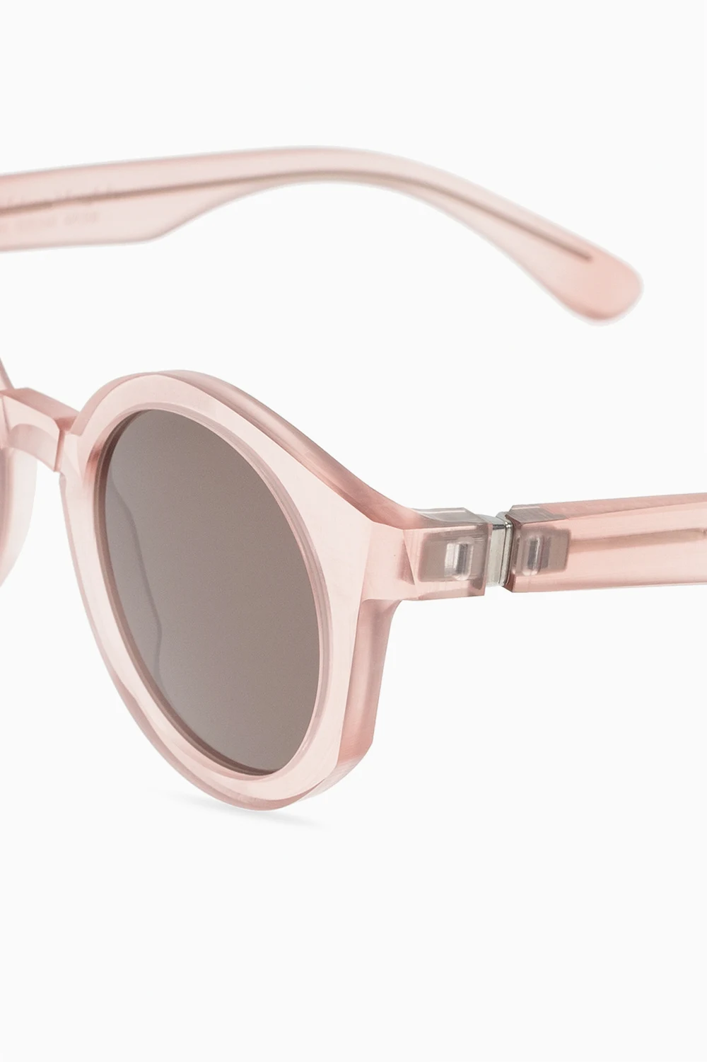 Różowe, transparentne okulary przeciwsłoneczne, model ‘MMRAW013’ Maison Margiela x Mykita. Certyfikowane soczewki 100% UVA/UVB w kolorze czarnym.