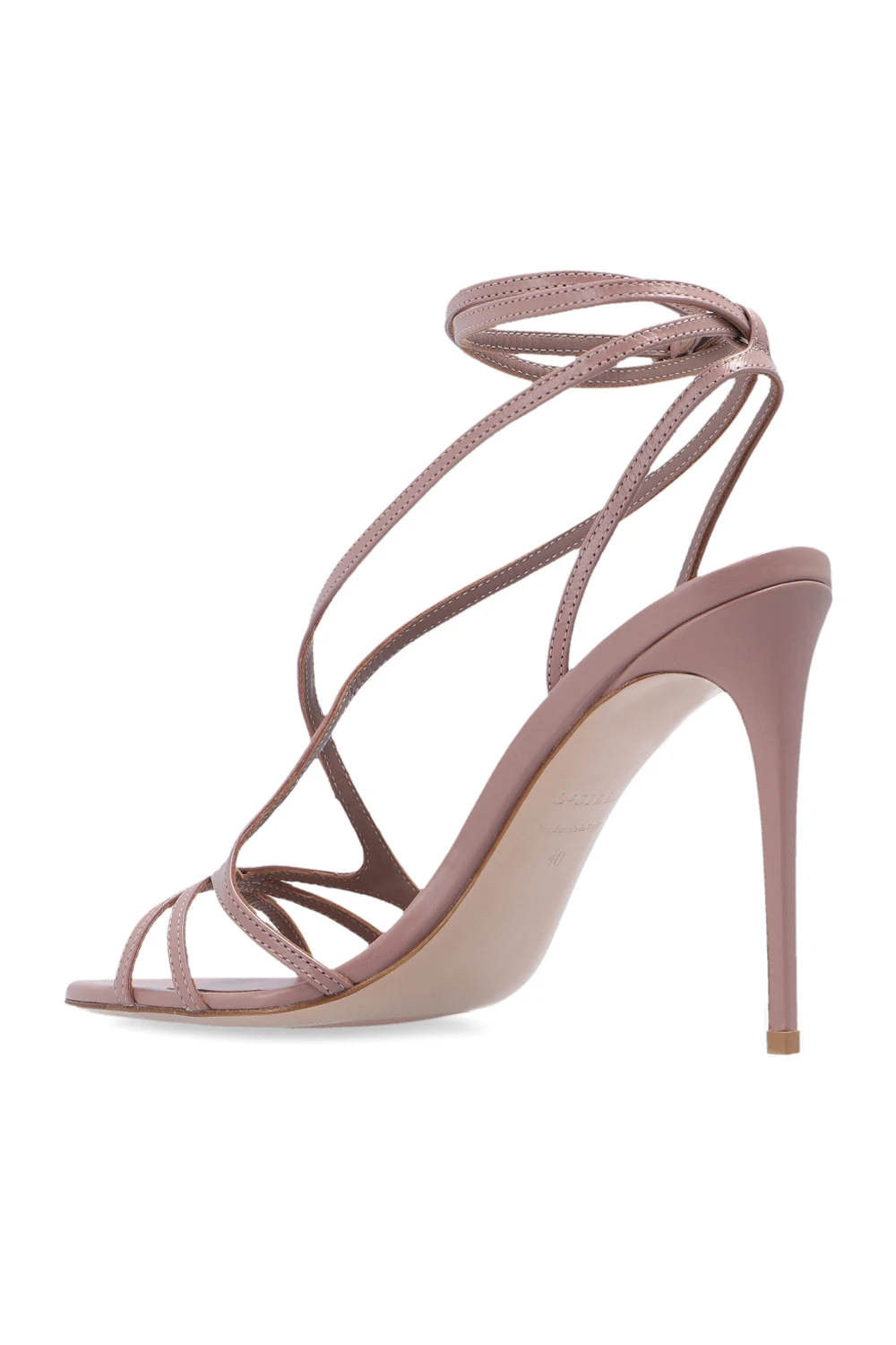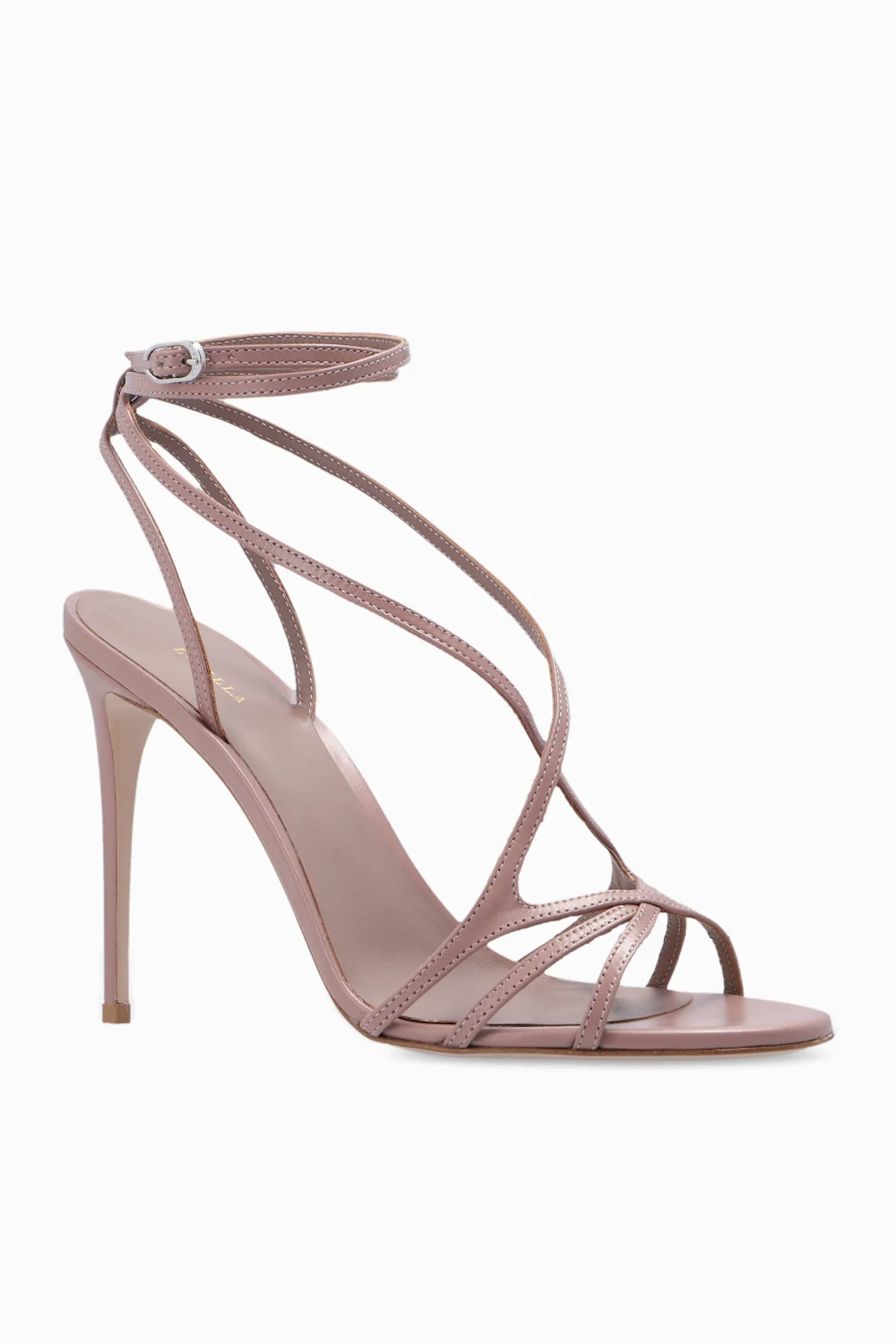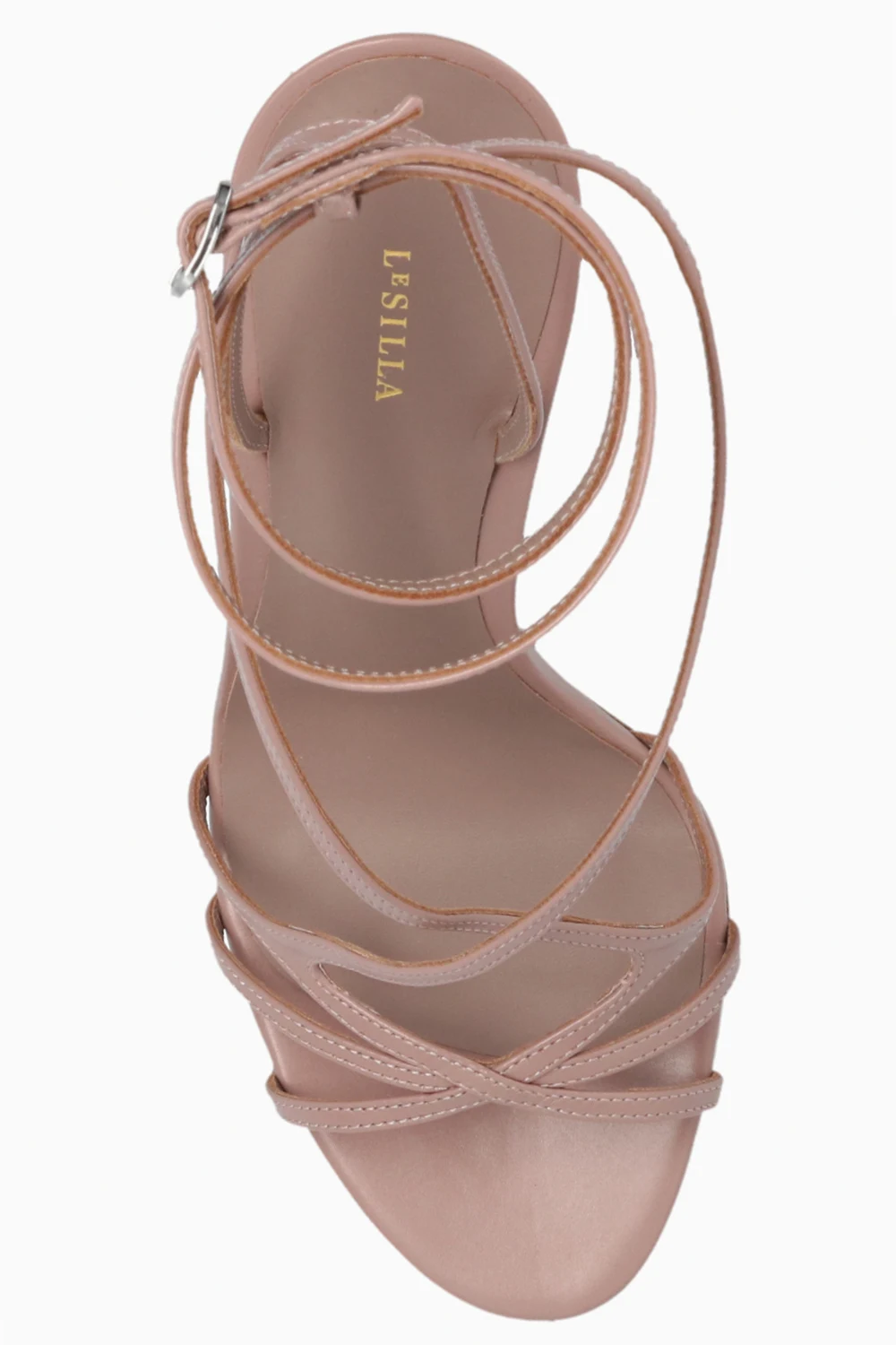 Pudroworóżowe sandały na obcasie, model ‘Belen’ Le Silla. Wykonane ze skóry. Zapinane na dekoracyjny pasek wokół kostki. Beżowa, skórzana podeszwa. Wykonane ręcznie we Włoszech.