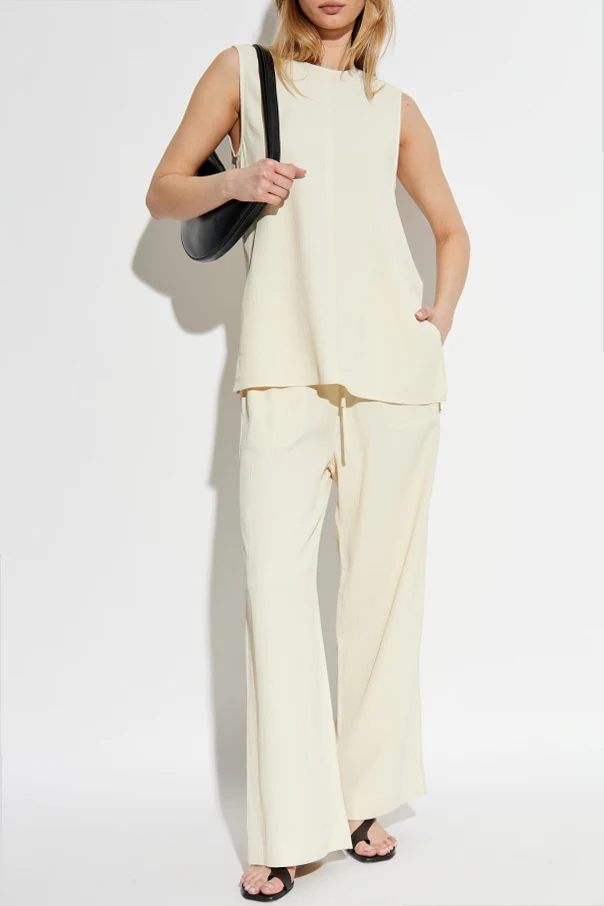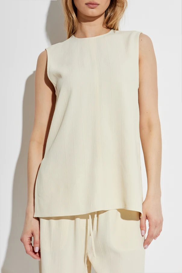 Odkryj kremowy top bez rękawów z ekskluzywnej kolekcji marki TOTEME , która słynie z minimalizmu przeplatanego odzieżą sportową. Ten elegancki element garderoby łączy klasyczną prostotę z nowoczesnym designem.