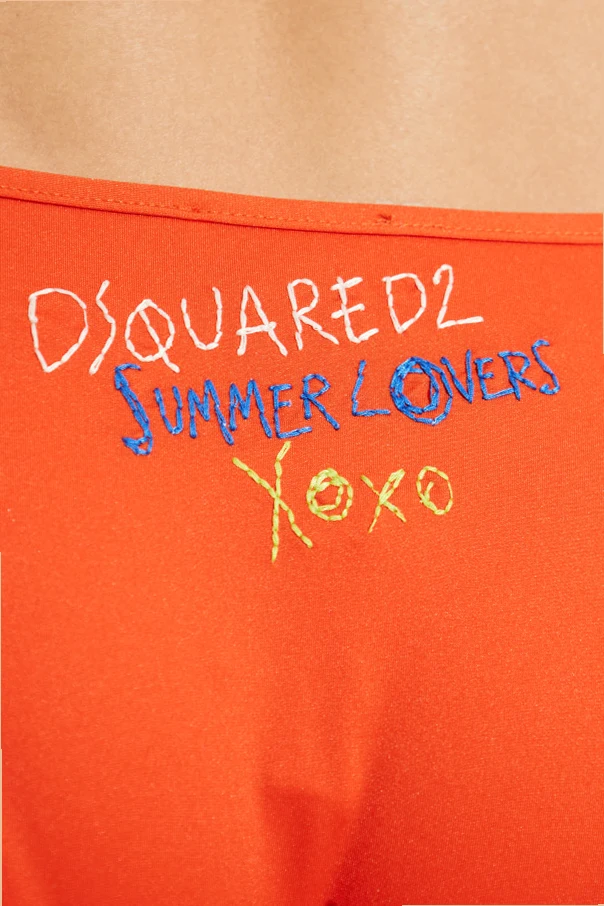 Prezentujemy Dół od kostiumu kąpielowego z ekskluzywnej kolekcji marki Dsquared2. Oto kwintesencja elegancji wśród odzieży plażowej, gdzie pomarańczowy kolor harmonijnie łączy się z klasycznym krojem bikini o niskim stanie.