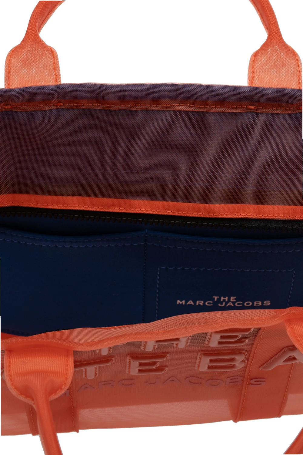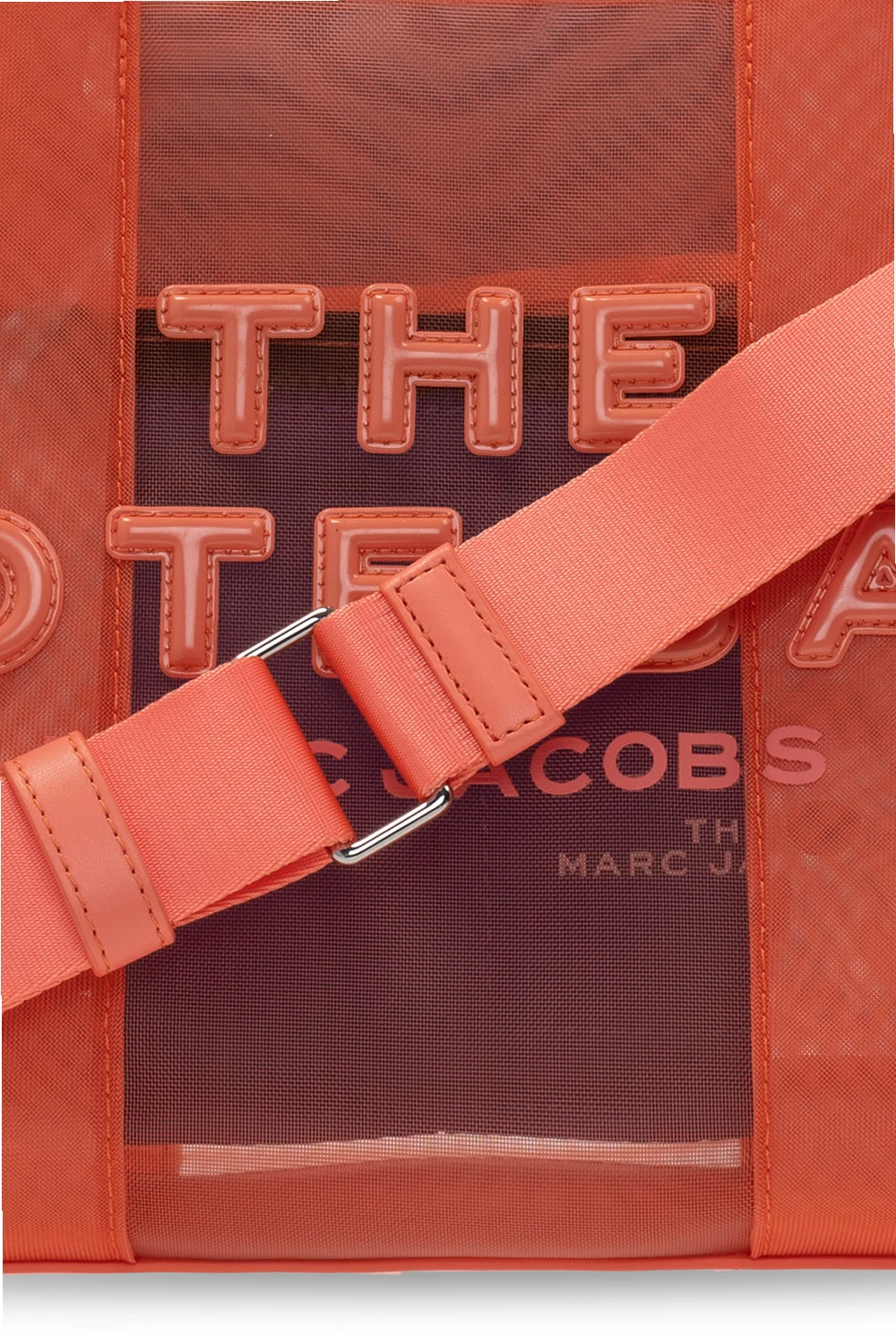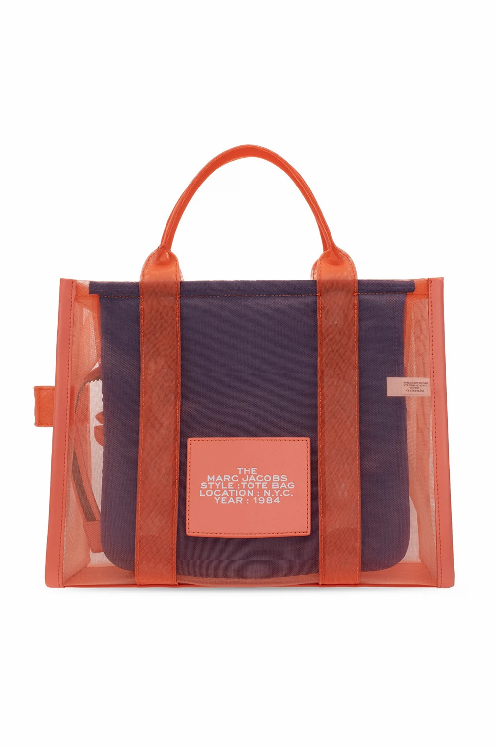 Pomarańczowa, transparentna torba na ramię, model 'The Medium Tote' Marc Jacobs. Zamykana na zamek. Ozdobiona wypukłym logo w kolorze białym i beżowym. Dołączony regulowany pasek. Dwie półokrągłe rączki. Wewnątrz komora i dwie wsuwane kieszenie.