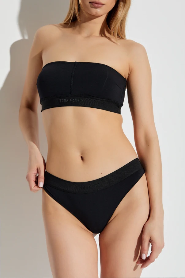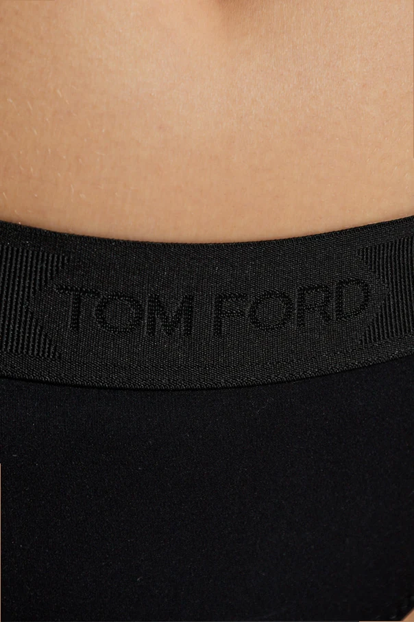 Subtelne logo "TOM FORD" na elastycznej taśmie w pasie to symbol prestiżu i luksusu, który przyciąga wzrok i wyróżnia te stringi na tle innych produktów.