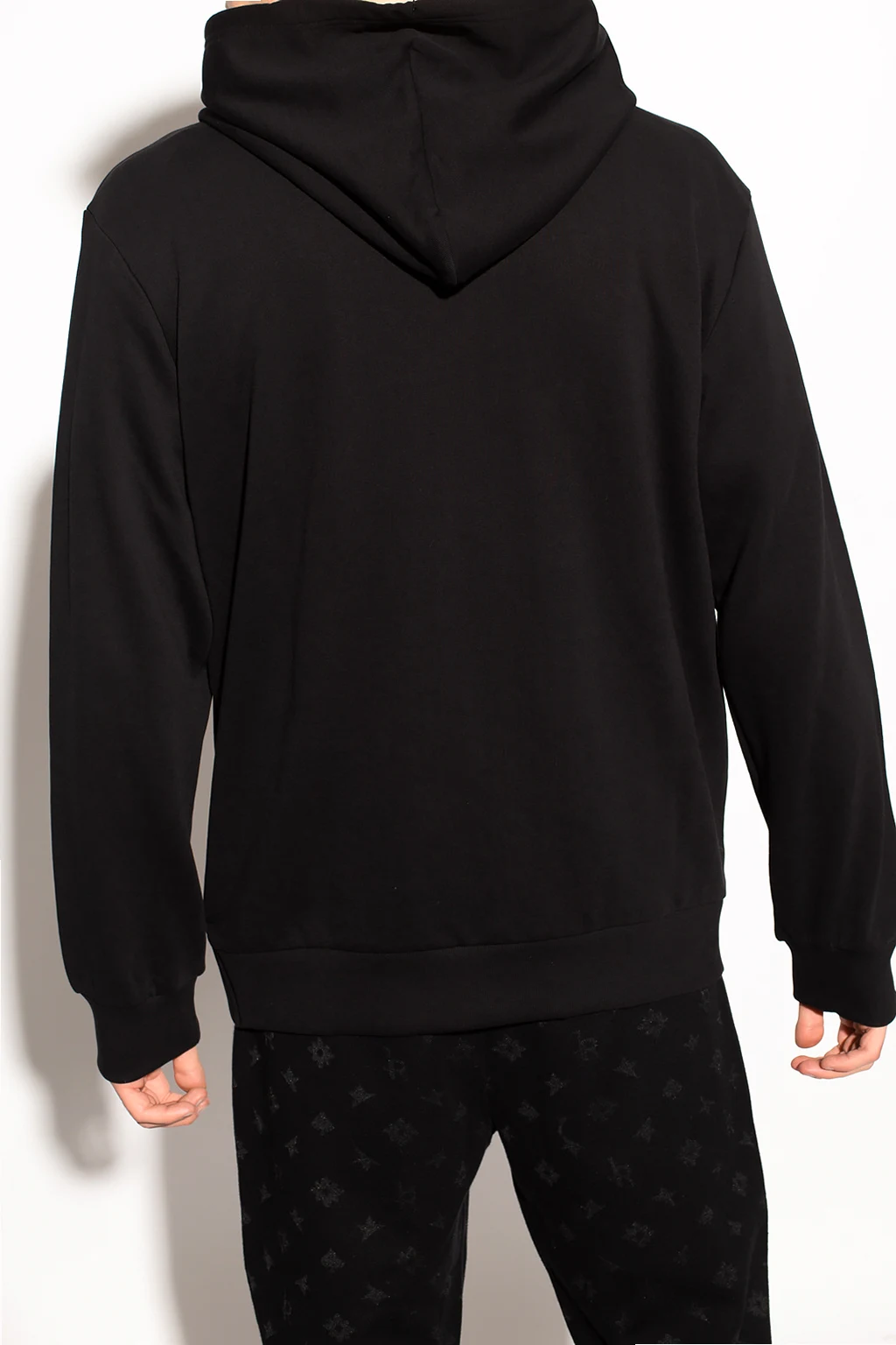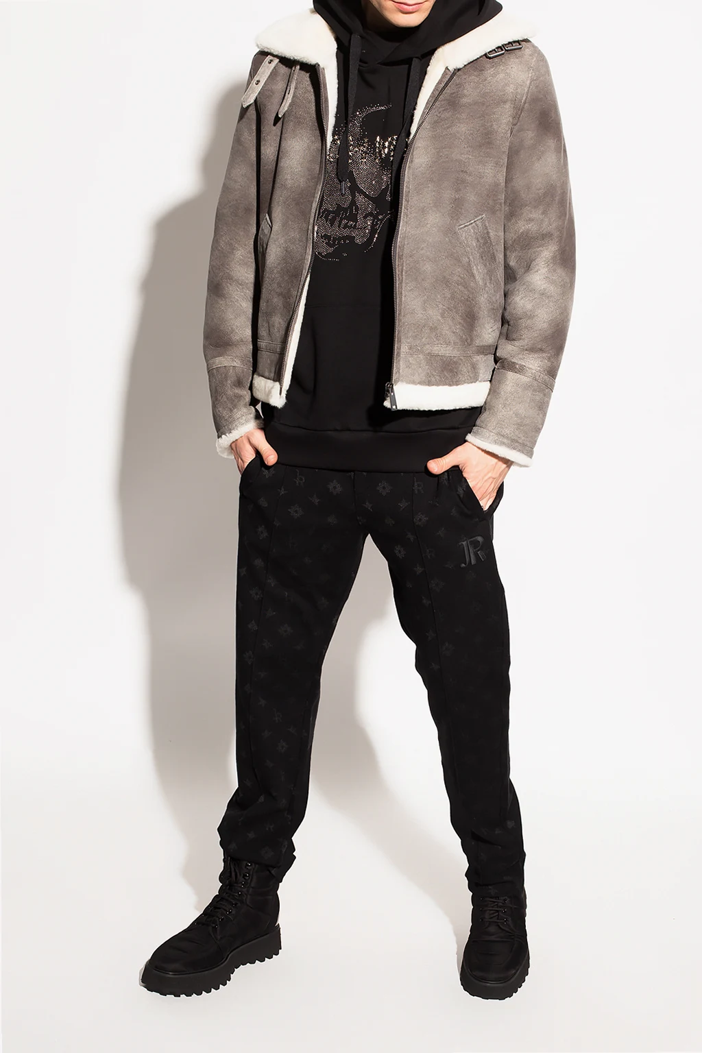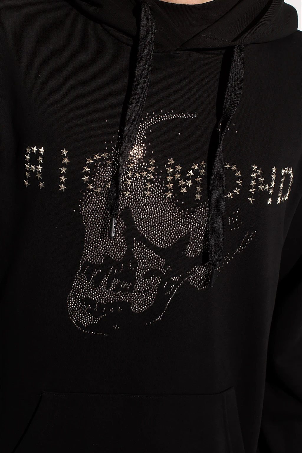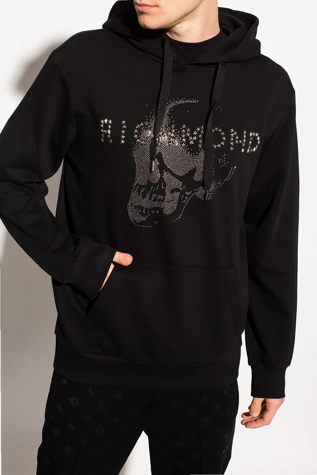 Czarna bluza John Richmond. Wykonana z bawełny. Ozdobiona połyskującym wzorem. Kaptur ściągany trokami. Dwie wsuwane kieszenie. Dół i długie rękawy wykończone ściągaczem.
