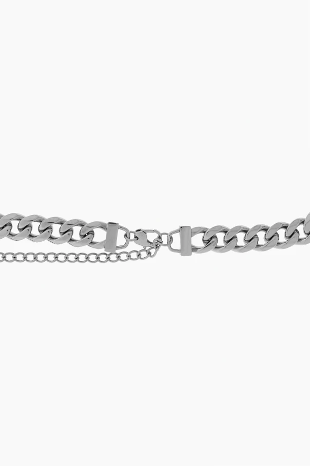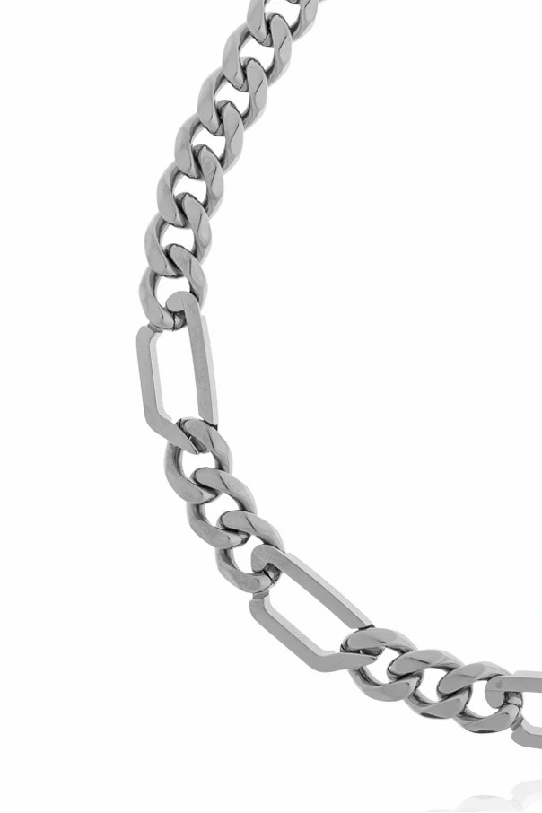 Naszyjnik z logo autorstwa Diesel to kunsztowne połączenie klasycznej formy i nowoczesnego wyrazu. Model zachwyca masywną linią łańcucha, w którym naprzemiennie pojawiają się grubsze, owalne ogniwa oraz wyraziste, prostokątne ogniwa, subtelnie podkreślając designerski charakter całości. Wykonany z wysokogatunkowej stali nierdzewnej o wykończeniu w kolorze srebrnym , olśniewa szlachetnością oraz dbałością o detale.