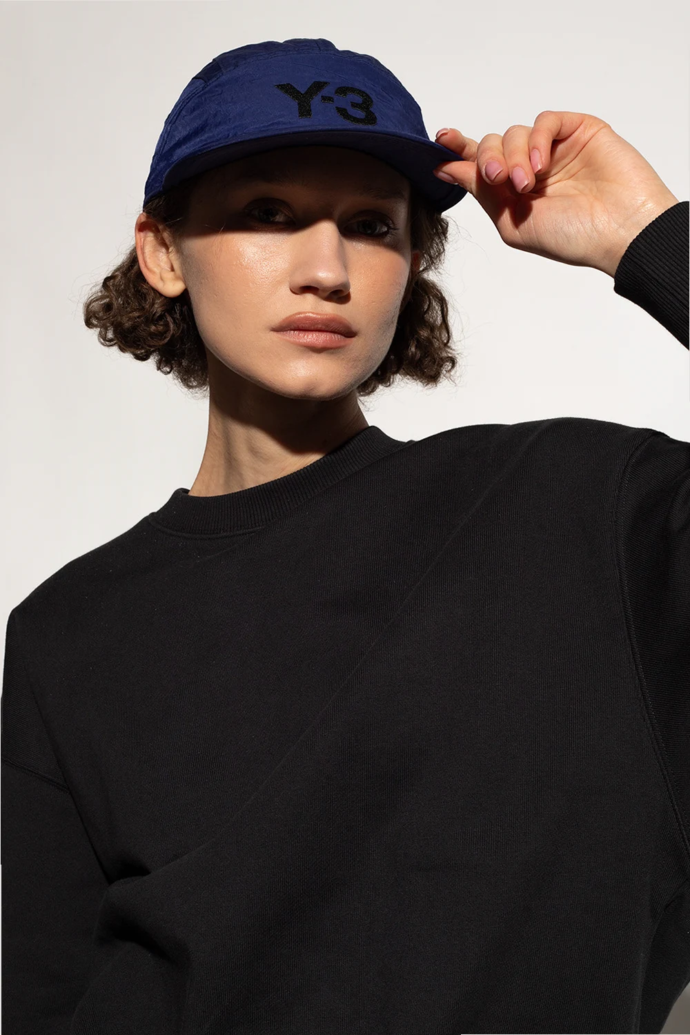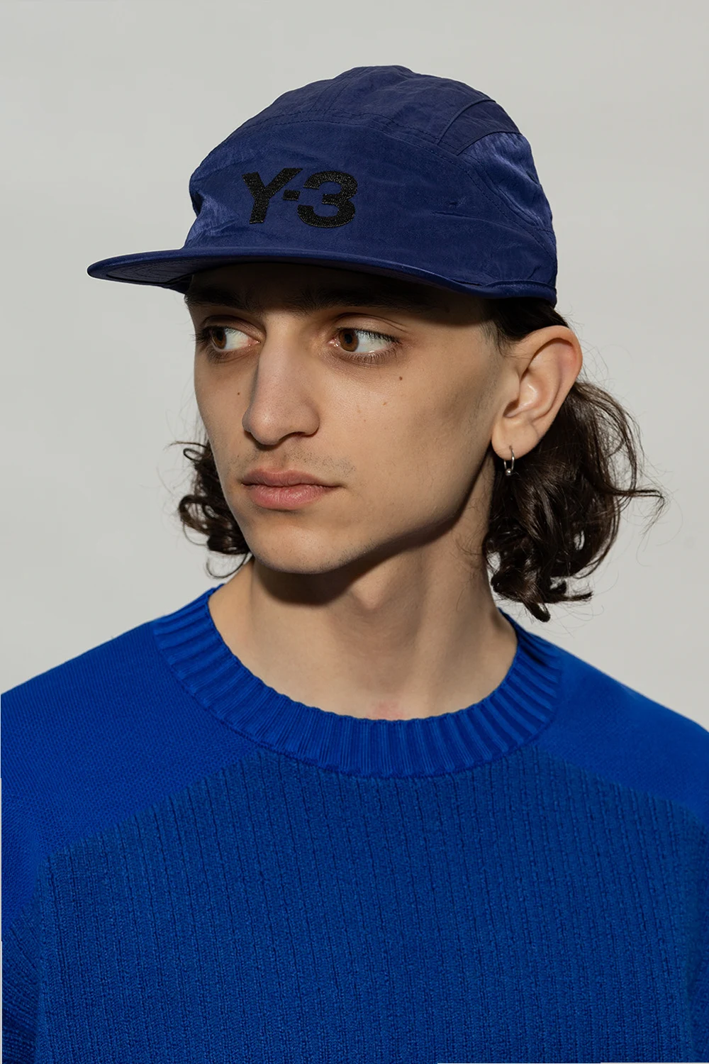 Granatowa czapka z daszkiem Y-3 Yohji Yamamoto. Wykonana z materiału z recyklingu. Z przodu czarne, wyszyte logo. Z tyłu ściągana trokami.