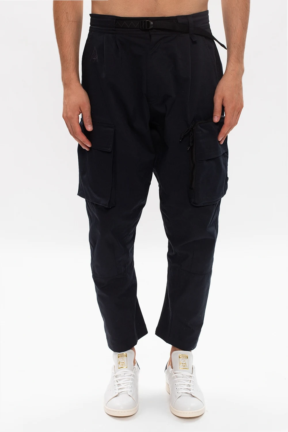 Granatowe spodnie Nike, kolekcja ‘ACG’. Zapinane na zamek, zatrzask oraz pasek z klamrą. Wyszyte logo. Siedem kieszeni. Zwężane nogawki. Produkt został zaprojektowany i przetestowany w stanie Oregon. Dzika przyroda i klimat tego stanu posłużyły za inspirację dla wyglądu i funkcjonalności produktu. Kolekcja ‘ACG’ czyli ‘All Conditions Gear’ została stworzona z innowacyjnych rozwiązań z myślą o odzieży sportowej, która sprawdzi się w każdych, nawet nadzwyczajnych warunkach.