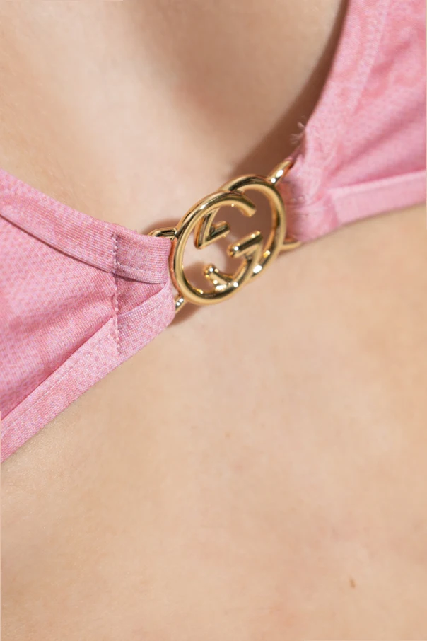 Przedstawiamy Państwu dwuczęściowy kostium kąpielowy Gucci, będący kwintesencją elegancji i wyrafinowanego stylu. Kostium składa się z misternie zaprojektowanego biustonosza typu trójkątnego oraz fig, które razem tworzą harmonijną całość.